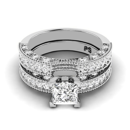 Reward yourself with our 2.30-3.45 ct princess cut diamonds - bridal set MDL#71616. This bridal set artistically designed with 1.95 carat sparkling side diamonds. Select your option of center diamond from options offered above. Select your option of precious metal between 14 Karat, 18 Karat Yellow, White and Rose Gold OR Platinum. At Primestyle.com, we deal ONLY with 100% real, natural and conflict free diamonds. Our diamonds are NOT enhanced NOR treated. Shine with fashion with Primestyle diamonds bridal sets.
