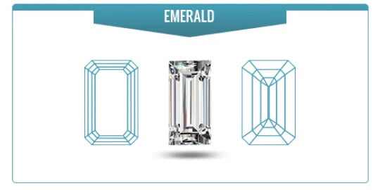 Emerald shaped diamonds have a softer look than the Princess cut, and a more elongated rectangular shape. Emerald cut diamonds have a distinctive stepped pavilion and large top that creates a unique look compared to nearly any other style of diamond.