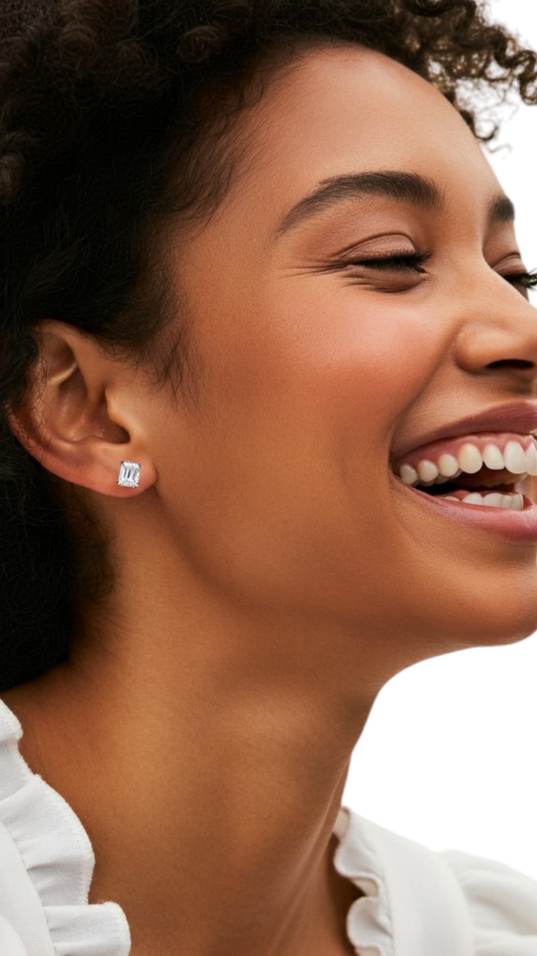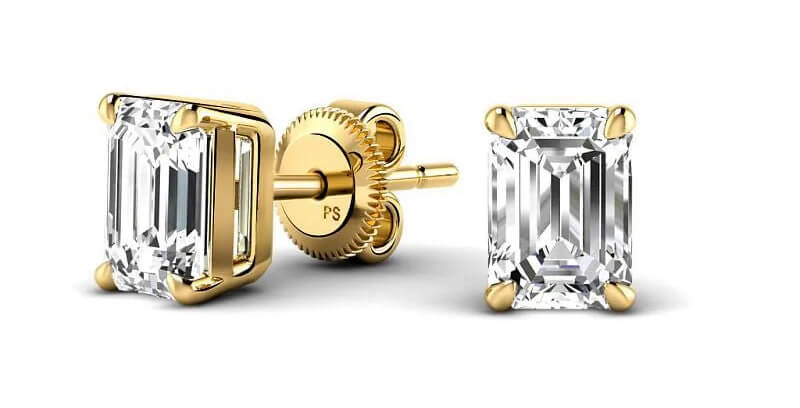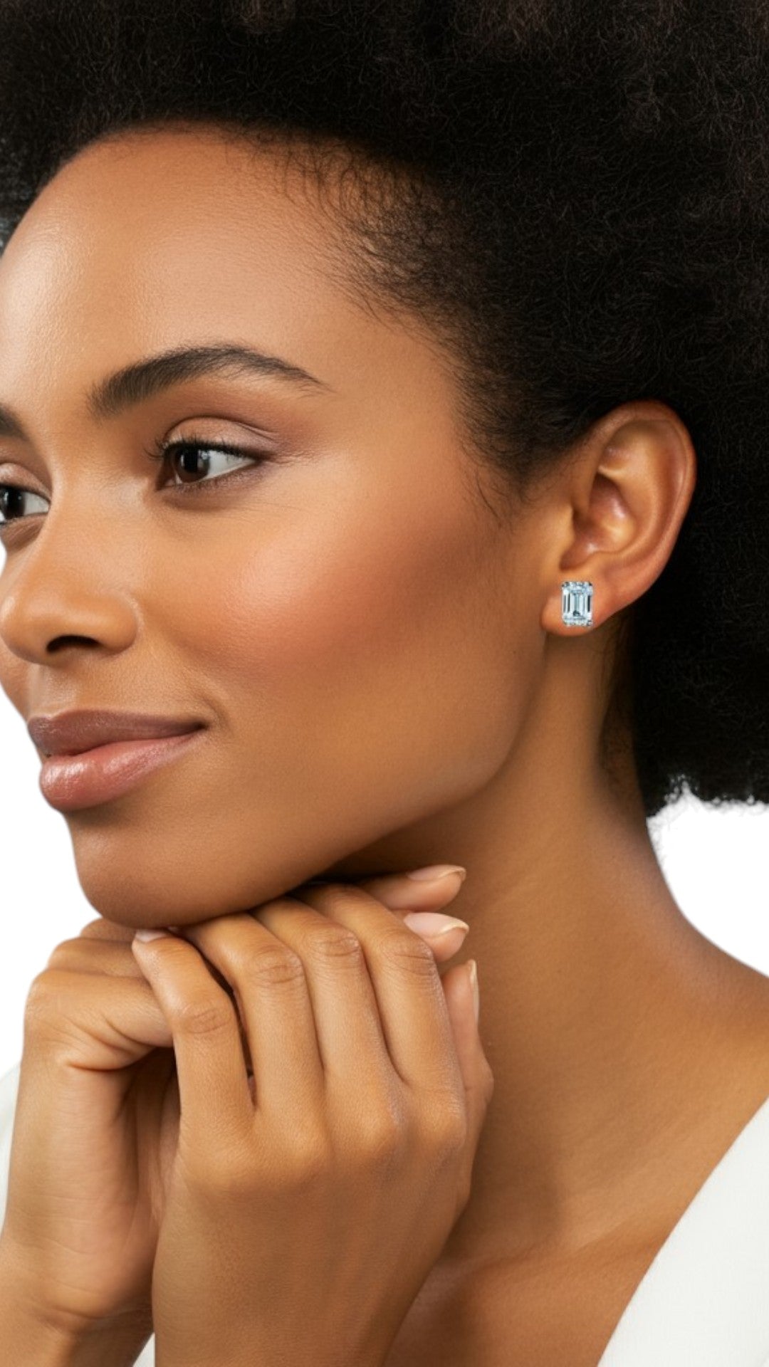 Add a touch of sophistication with four-prong emerald cut stud earrings. The sleek, elongated shape of the emerald cut, paired with a secure four-prong setting, brings out the stone’s brilliant clarity and creates a stunning, timeless look that is perfect for both everyday elegance and special occasions.
