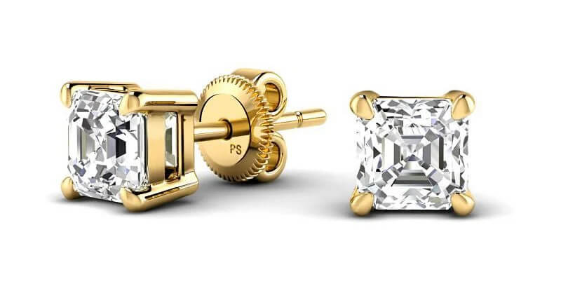 Enhance your elegance with these four-prong Ascher cut stud earrings. The captivating shape of the Ascher cut creates a sophisticated and classic look, securely held in a sleek four-prong setting, making them the perfect accessory for both everyday wear and formal occasions."