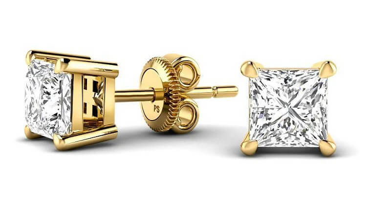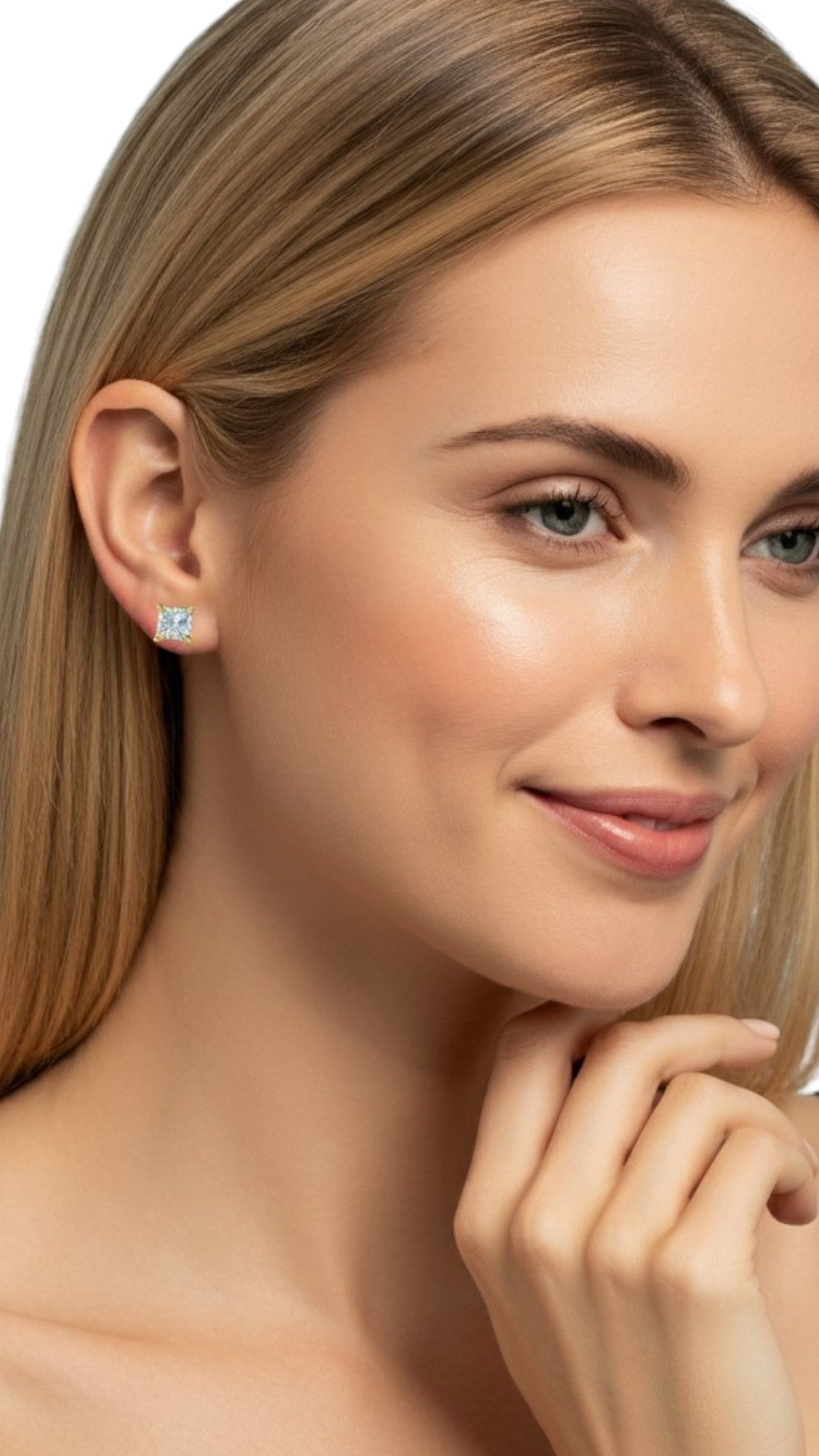 Make a bold yet elegant statement with four-prong princess cut stud earrings. The sharp, angular design of the princess cut is enhanced by the secure four-prong setting, ensuring maximum brilliance and timeless appeal, perfect for both everyday wear and special occasions.