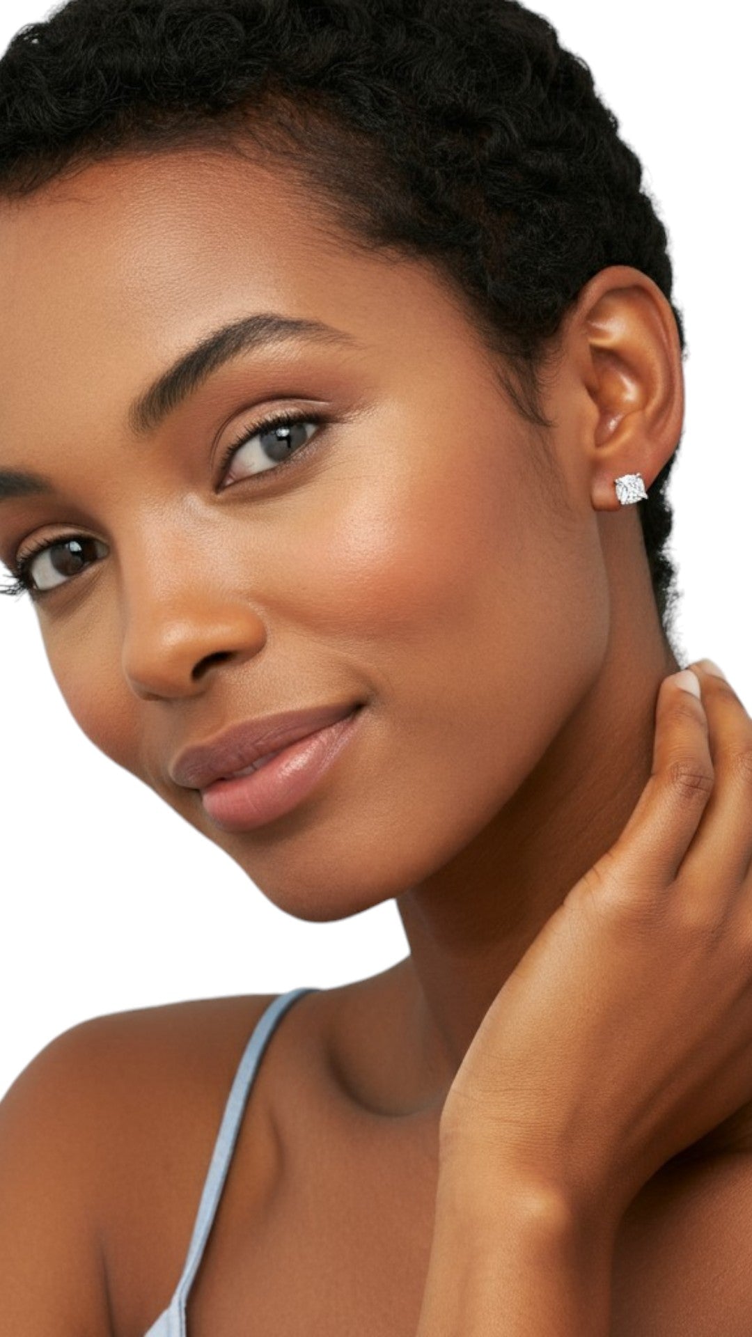 Elevate your elegance with cushion-cut lab-grown diamond stud earrings, perfectly showcased in a secure and refined four-prong setting. Their soft, square silhouette combines classic charm with modern sophistication, making them an unforgettable addition to your jewelry collection.