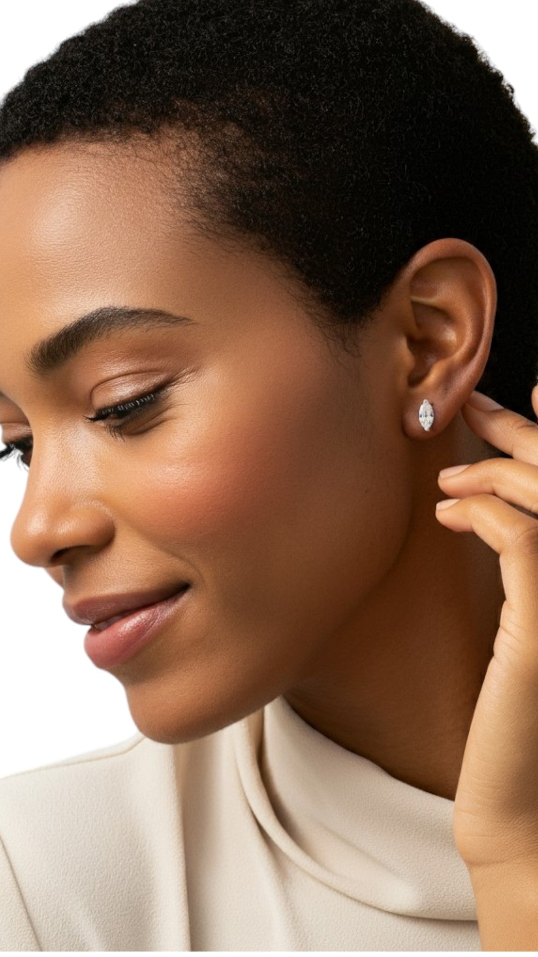 Make a bold statement with these exquisite two-prong marquise-cut stud earrings. The unique, elongated marquise shape is beautifully secured in a minimalist two-prong setting, offering a striking, modern look that’s perfect for any occasion, adding elegance and flair to your everyday or special-event wardrobe.