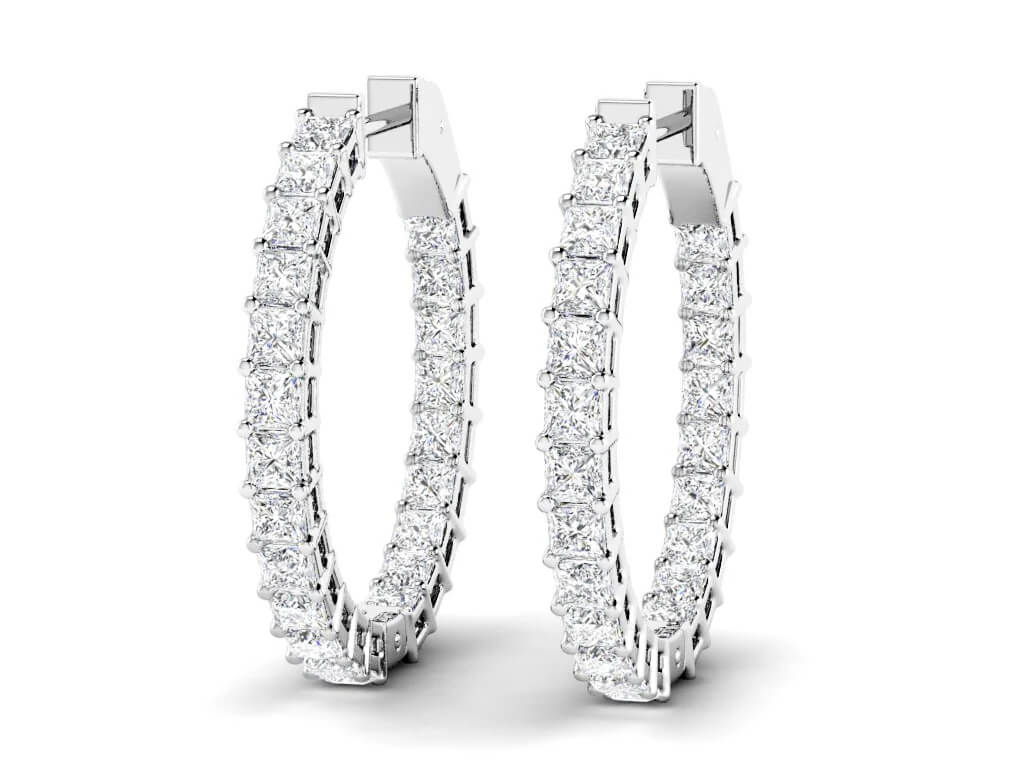 5.50-8.50 CT Princess Cut Lab Grown Diamonds - Hoop and Drop Earrings