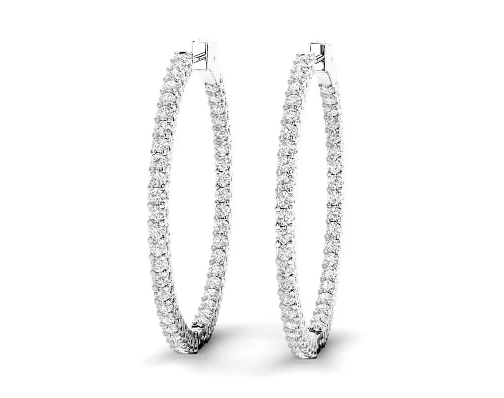Make an unforgettable impression with these stunning round-cut lab-grown diamond hoop earrings in 4.00-7.00 carats. Set in classic gold or platinum, these ethically sourced diamonds offer incredible brilliance and timeless elegance at a fraction of the price, making them the perfect gift or personal indulgence.