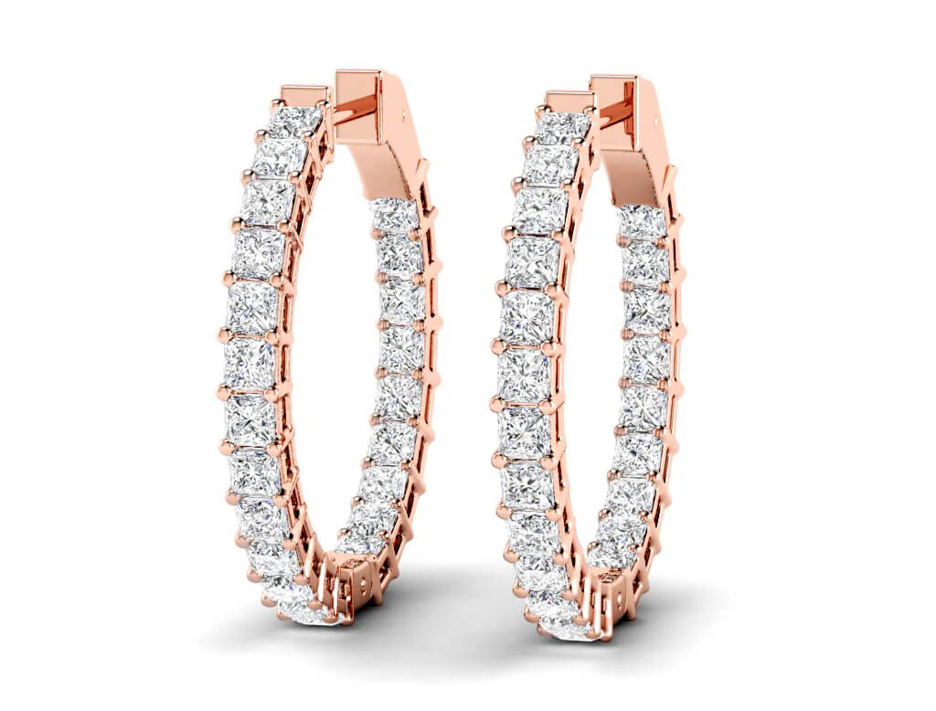 Make a bold statement with these stunning princess-cut lab-grown diamond hoop earrings with 5.50-8.50 carats. Designed for elegance and sustainability, each pair offers unmatched brilliance and clarity, making them the perfect gift or luxurious everyday accessory.