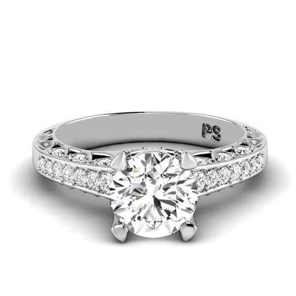Complement yourself with our 0.60-1.75 ct round cut diamonds - engagement ring MDL#110424. This engagement ring artistically designed with 0.25 carat inexpensive side diamonds. Select your option of center diamond from options offered above. Select your option of precious metal between 14 Karat, 18 Karat Yellow, White and Rose Gold OR Platinum. At Primestyle.com, we deal ONLY with 100% real, natural and conflict free diamonds. Our diamonds are NOT enhanced NOR treated. Shine with style with Primestyle diamonds engagement rings.
