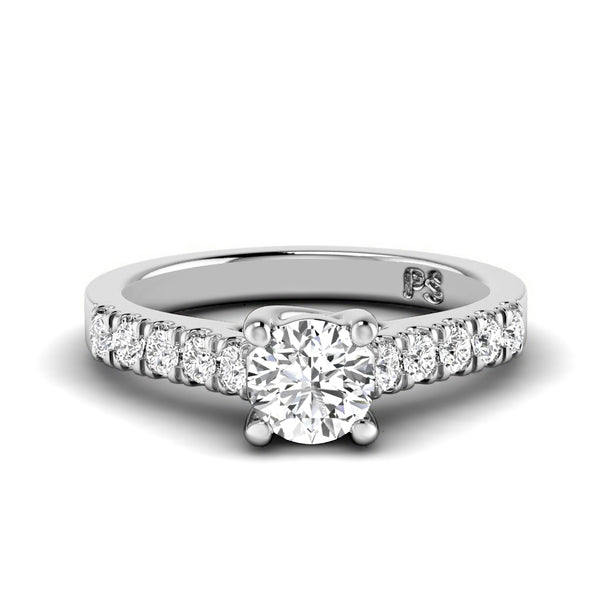 Bring loads of shine to your look with our 0.60-1.75 ct round cut diamonds - engagement ring MDL#16026. This engagement ring crafted with 0.25 carat blissful side diamonds. Select your option of center diamond from options offered above. Select your option of precious metal between 14 Karat, 18 Karat Yellow, White and Rose Gold OR Platinum. At Primestyle.com, we deal ONLY with 100% real, natural and conflict free diamonds. Our diamonds are NOT enhanced NOR treated. Shine with sophistication with Primestyle diamonds engagement rings.