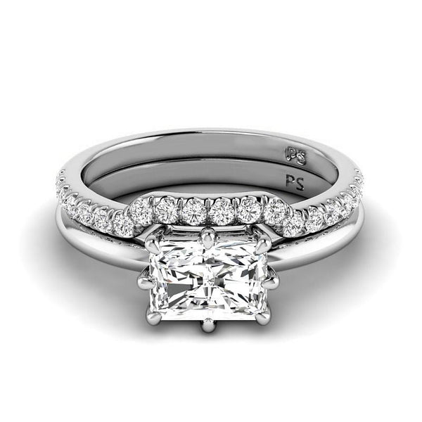 Discover the perfect expression of your style with this 0.75-6.25 CT Radiant & Round Cut Lab Grown diamonds with a captivating center stone. The 14kt, 18kt, and platinum setting provides the ideal backdrop for the lab-grown diamonds to shine. PrimeStyle's commitment to excellence means you can enjoy luxury craftsmanship in this bridal set at a price that makes sense.