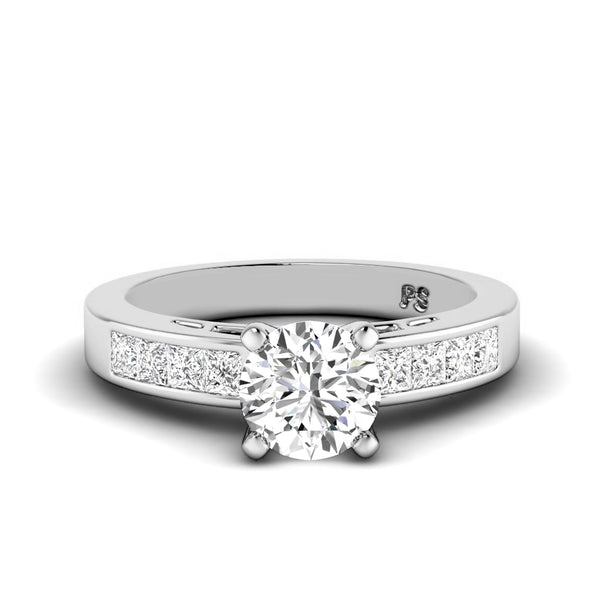 Treat yourself with our 0.85-2.00 ct princess & round cut diamonds - engagement ring MDL#71874. This engagement ring artistically designed with 0.50 carat cool side diamonds. Select your option of center diamond from options offered above. Select your option of precious metal between 14 Karat, 18 Karat Yellow, White and Rose Gold OR Platinum. At Primestyle.com, we deal ONLY with 100% real, natural and conflict free diamonds. Our diamonds are NOT enhanced NOR treated. Shine with elegance and simplicity with Primestyle diamonds engagement rings.
