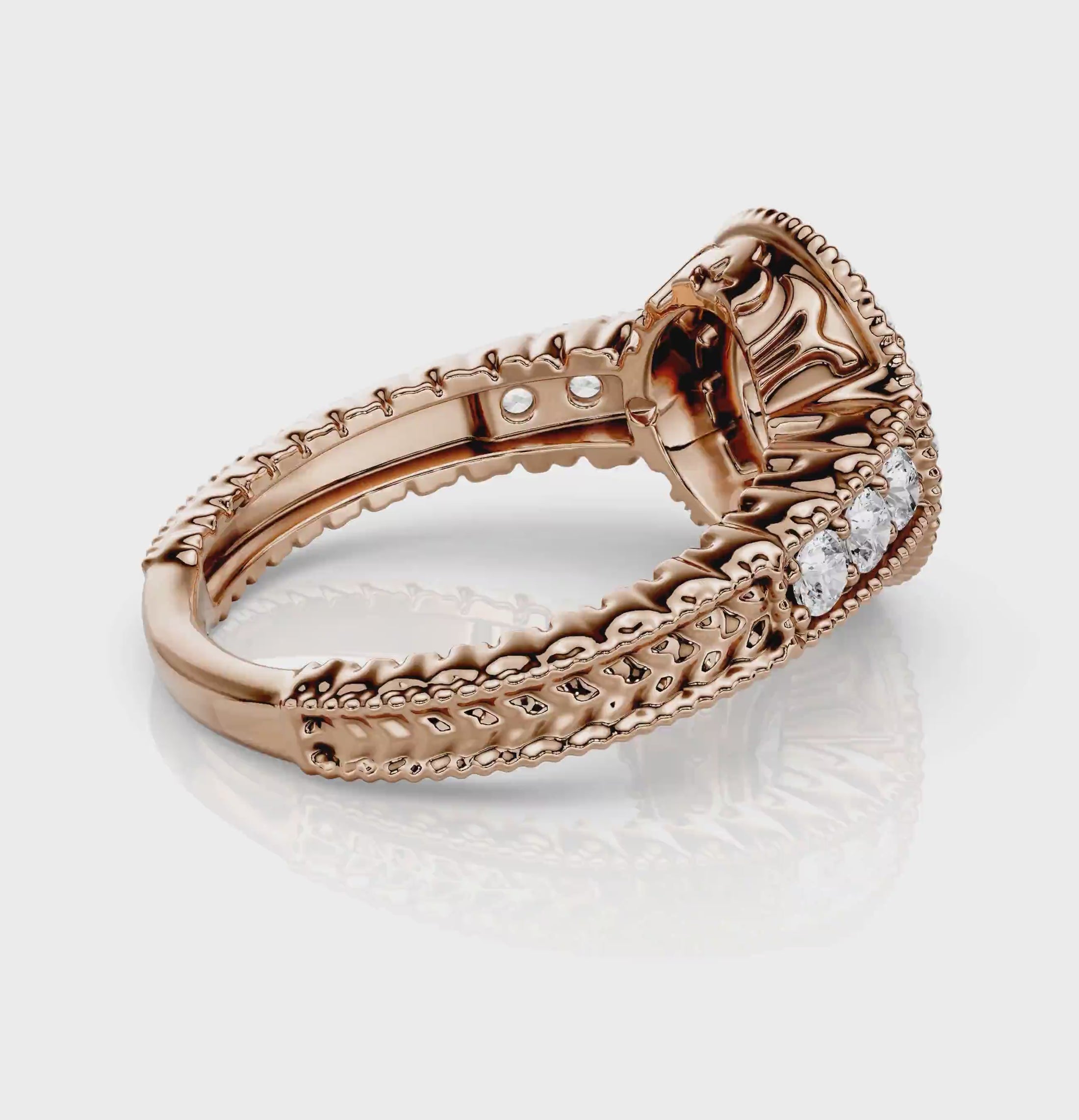 - Side Stones 2: 16 Round Cut natural diamonds weighing 0.20 carat