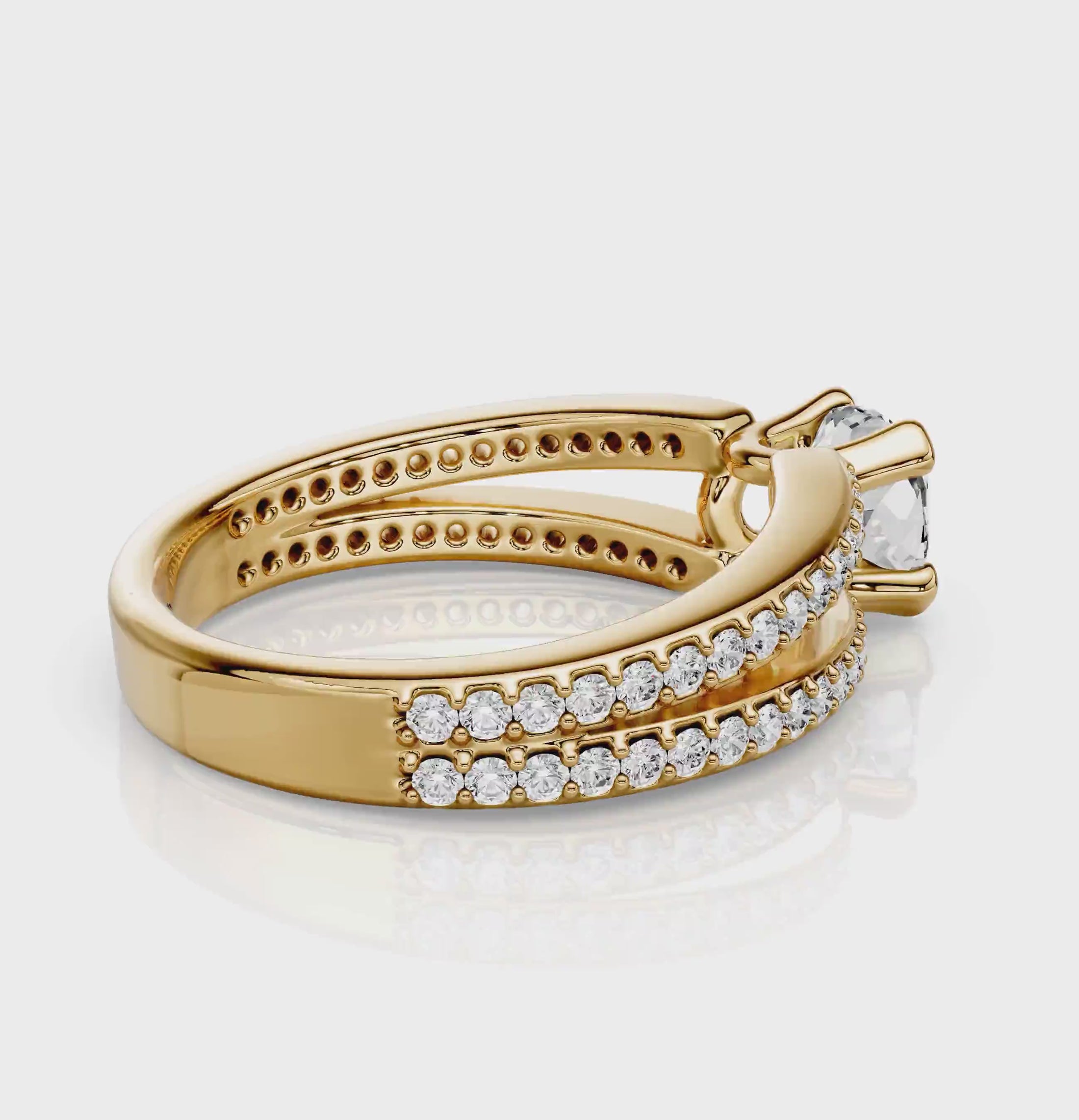 - Side Stones 1: 56 Round Cut lab grown diamonds weighing 0.40 carat