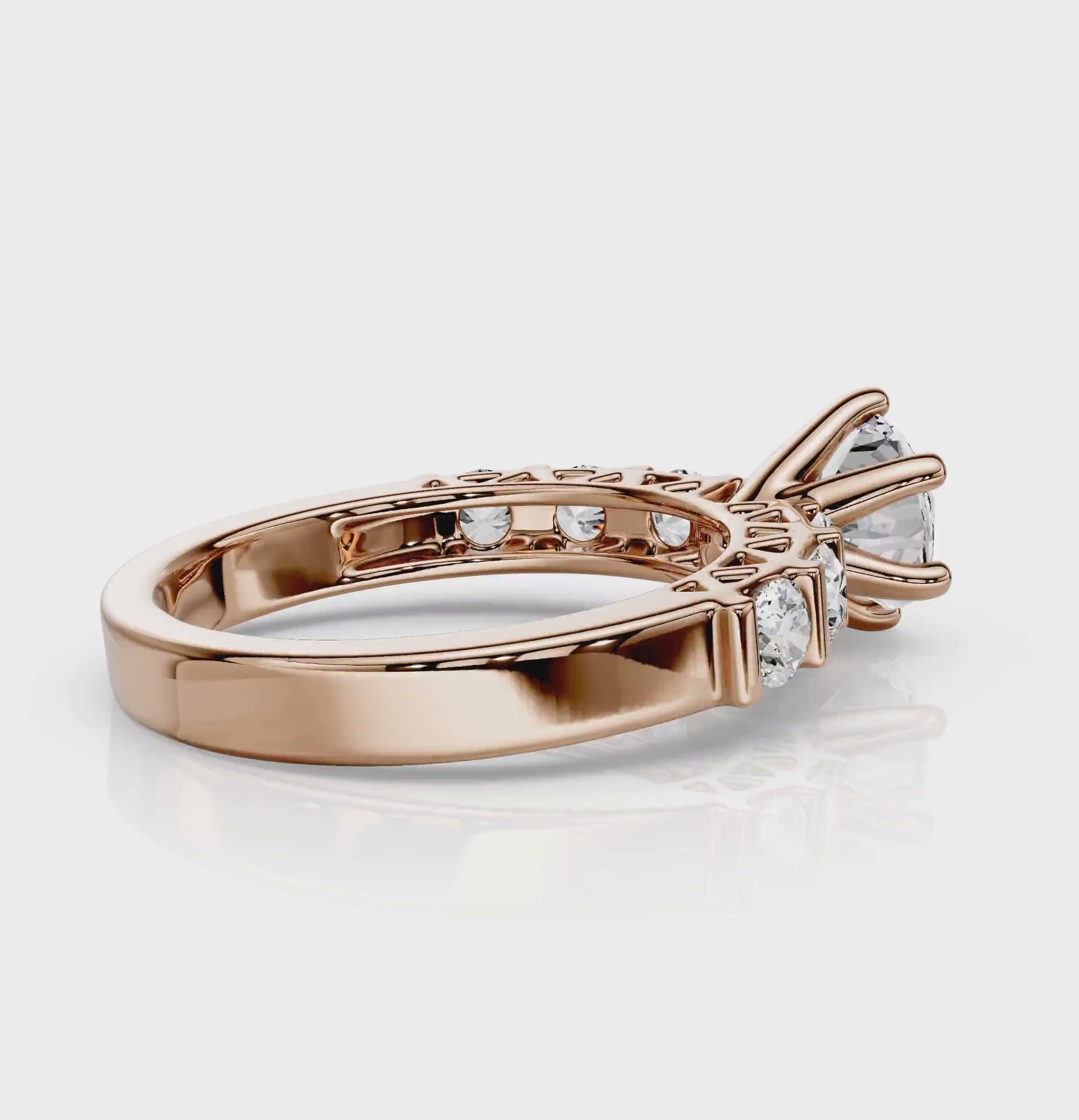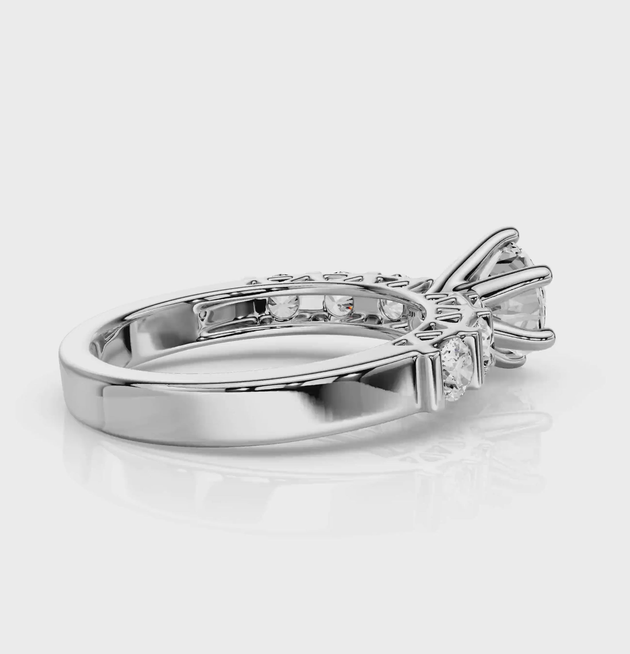 Side Stones 1: 6 Round Cut natural diamonds weighing 0.60 carat