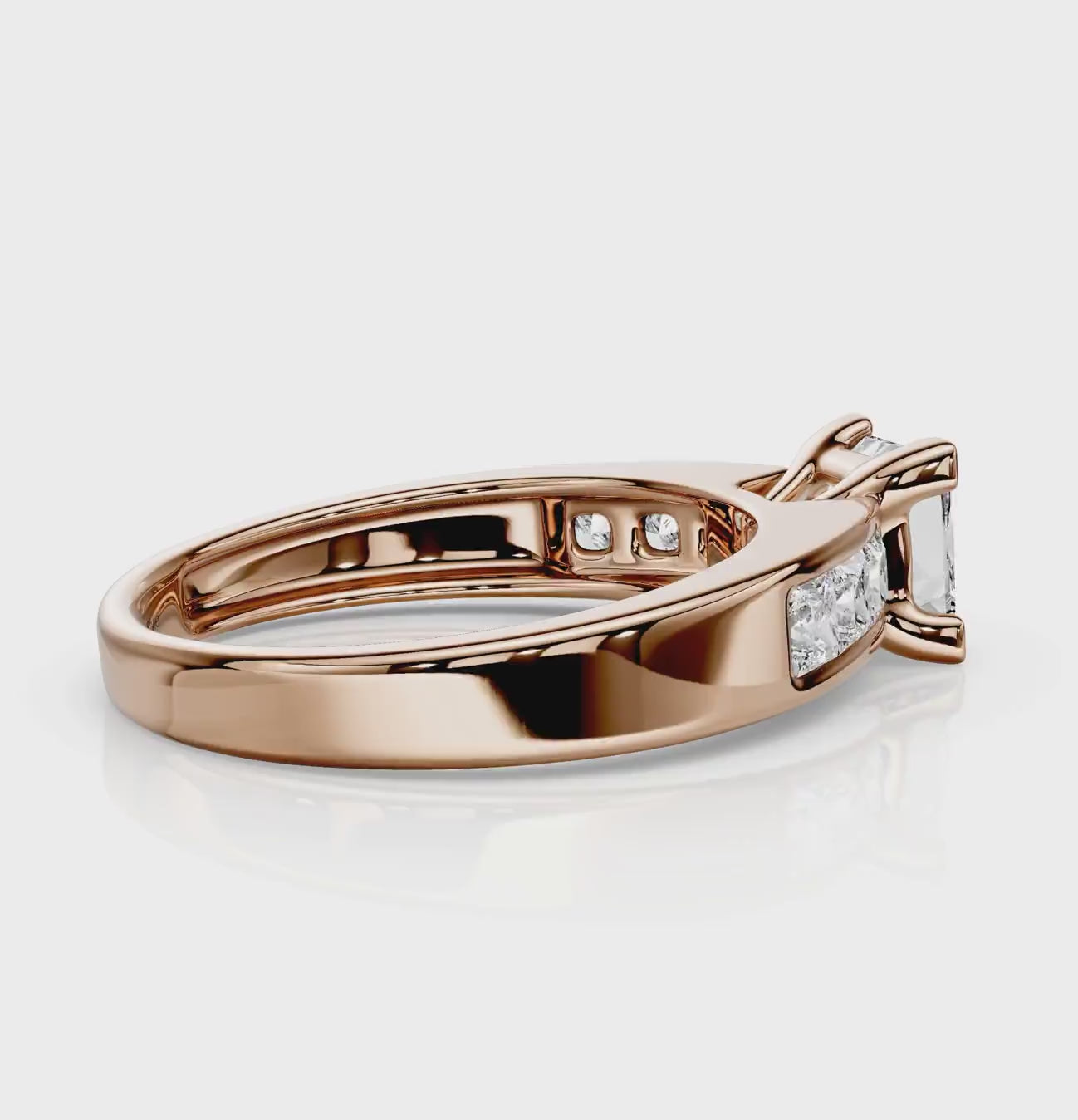 Side Stones 1: 6 Princess Cut natural diamonds weighing 0.80 carat