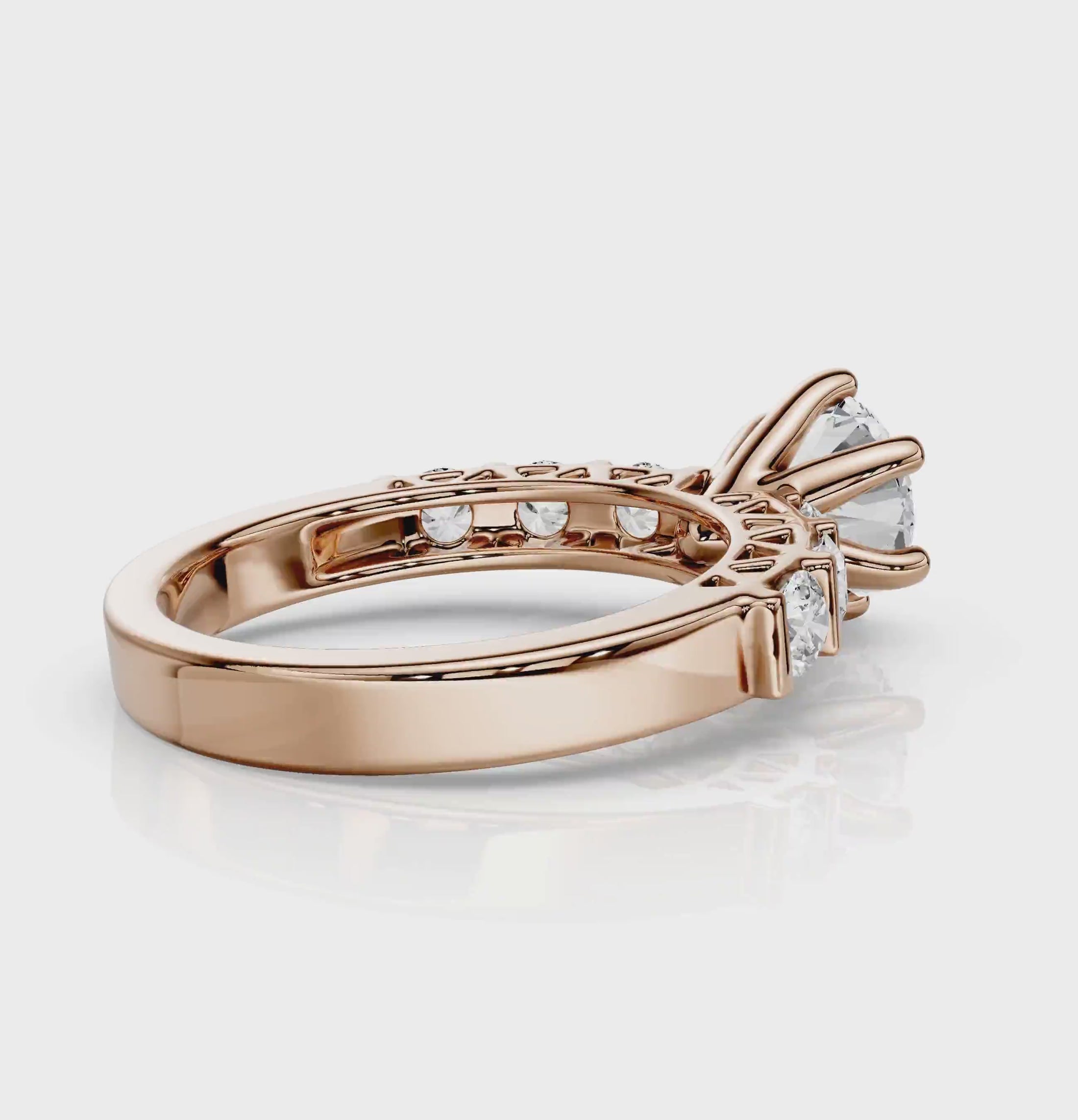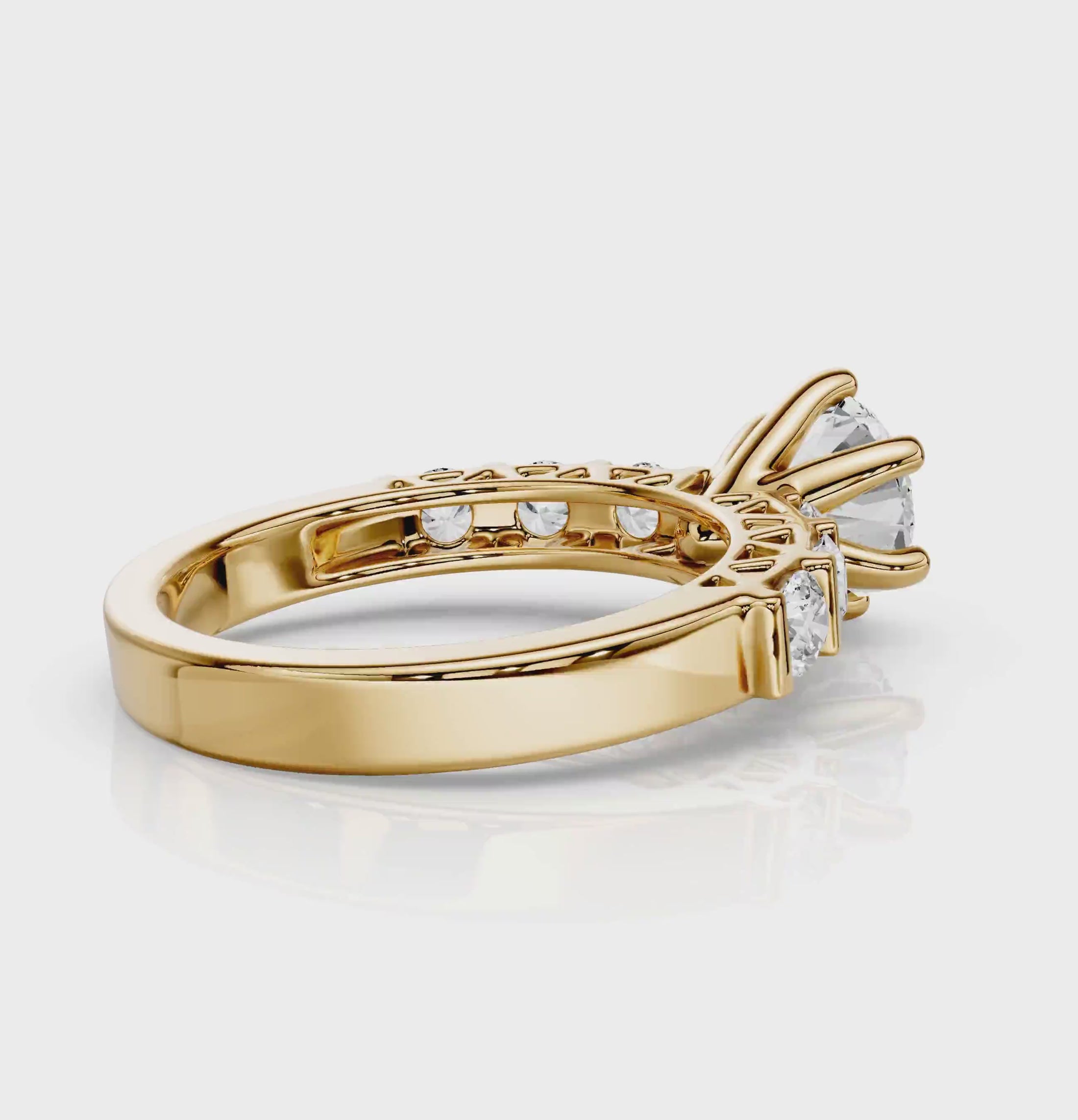 Side Stones 1: 6 Round Cut lab grown diamonds weighing 0.65 carat
