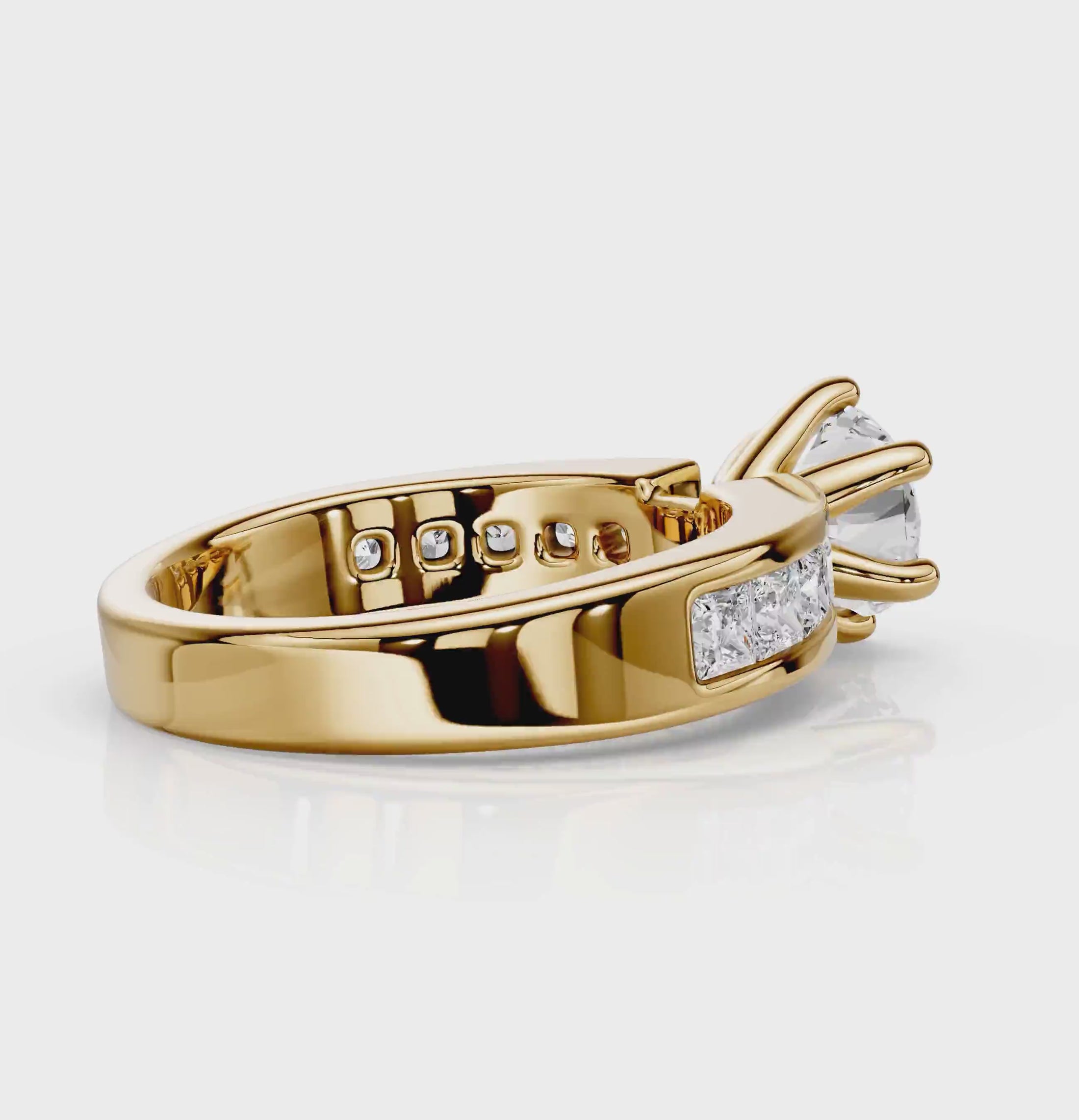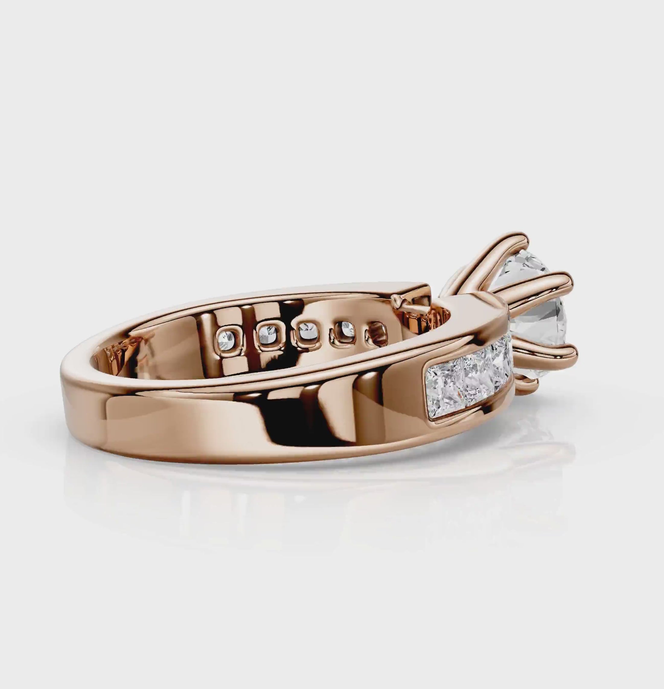 Side Stones 1: 10 Princess Cut natural diamonds weighing 0.90 carat