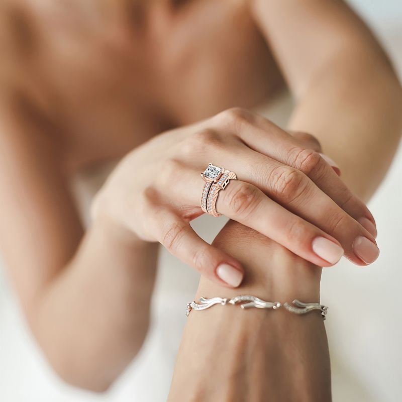 Experience luxury redefined with this 1.25-6.75 CT Princess & Round Cut Lab Grown diamonds featuring an extraordinary center stone. Set in 14kt, 18kt, and platinum, the lab-grown diamonds create a dazzling display of light and brilliance. PrimeStyle's commitment to quality craftsmanship ensures this bridal set will become a cherished part of your jewelry collection for years to come.