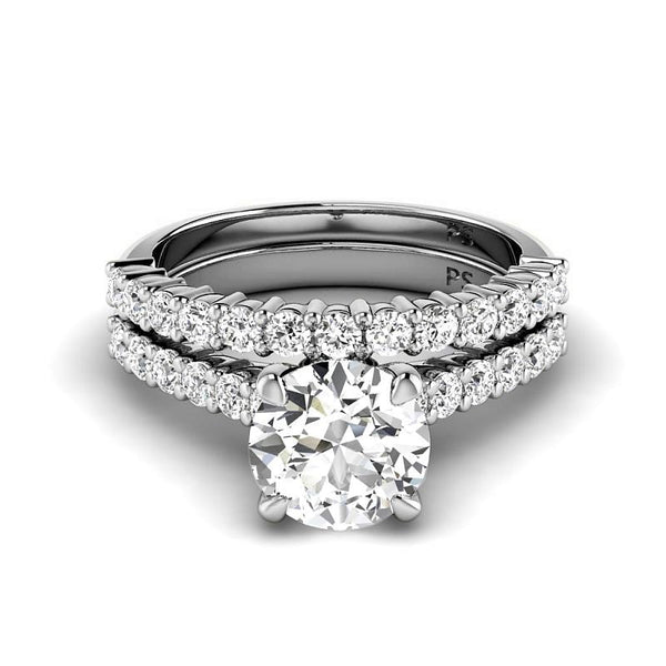 Step into sophistication with this 1.35-6.85 CT Round Cut Lab Grown diamonds featuring a beautiful center stone. The 14kt, 18kt, and platinum setting provides the perfect foundation for the lab-grown diamonds to showcase their natural beauty. PrimeStyle's commitment to affordable luxury means you can enjoy exceptional craftsmanship in this bridal set without the designer price tag.