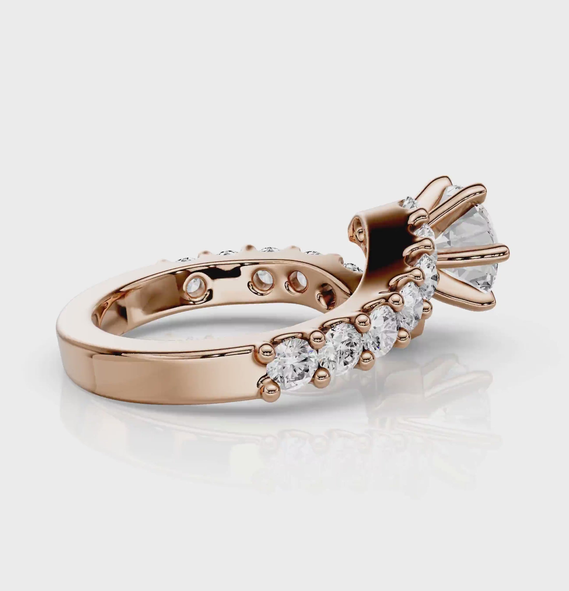 Side Stones 1: 14 Round Cut natural diamonds weighing 1.30 carat