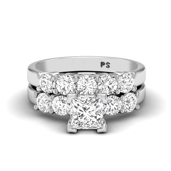 Step into sophistication with this 1.75-2.90 CT Princess & Round Cut Natural diamonds featuring a beautiful center stone. The 14kt, 18kt, and platinum setting provides the perfect foundation for the natural diamonds to showcase their natural beauty. PrimeStyle's commitment to affordable luxury means you can enjoy exceptional craftsmanship in this bridal set without the designer price tag.