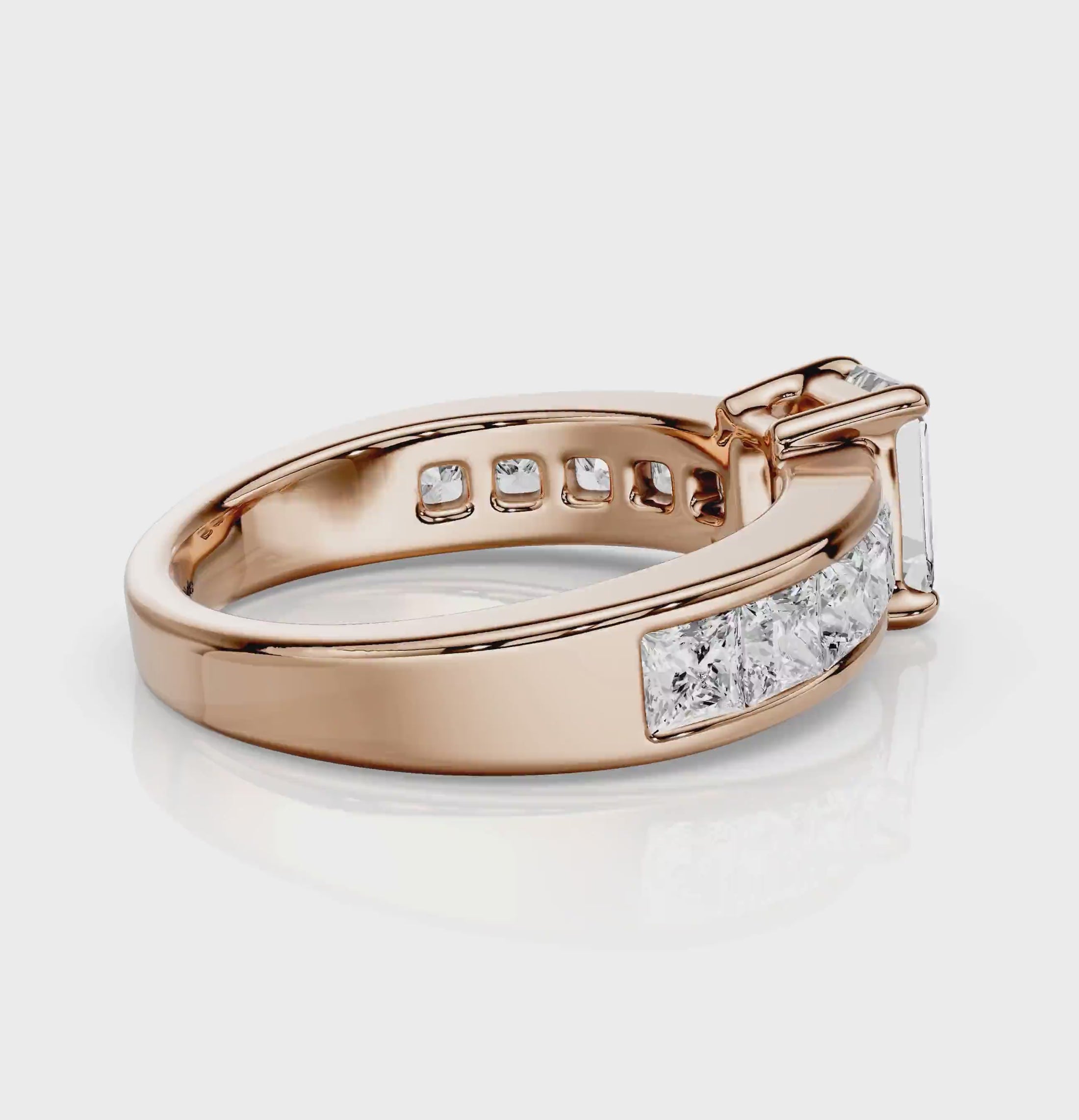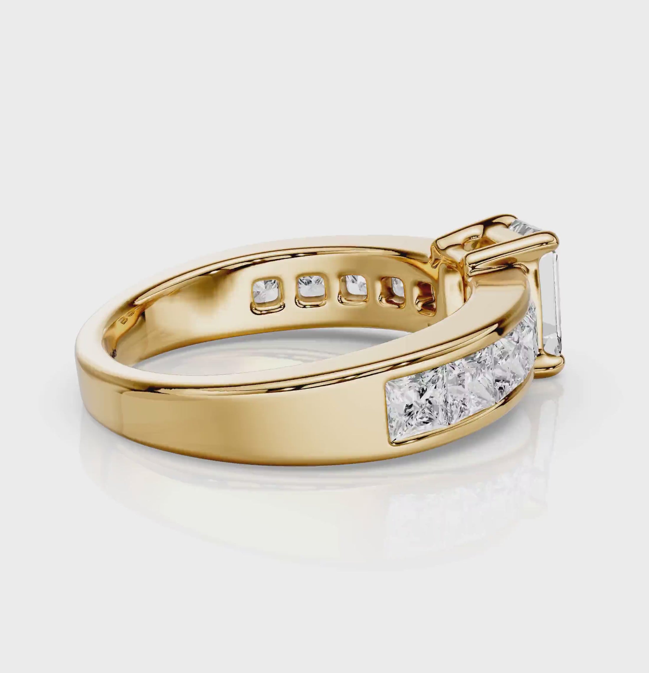 Side Stones 1: 10 Princess Cut natural diamonds weighing 1.50 carat