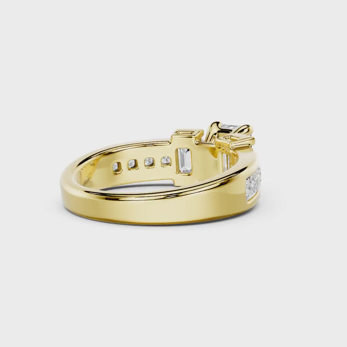 - Side Stones 2: 8 Princess Cut lab grown diamonds weighing 0.65 carat