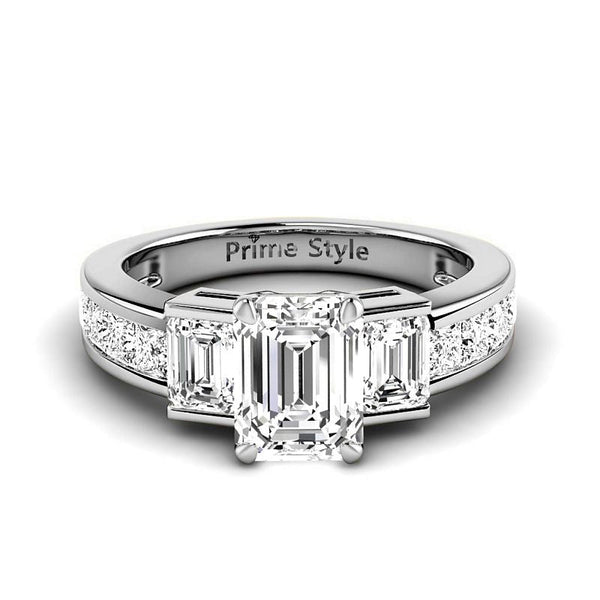 Handcrafted with precision, this 1.85-7.35 CT Emerald & Princess Cut Lab Grown diamonds with an exquisite center stone in 14kt, 18kt, and platinum embodies PrimeStyle's legacy of excellence. This engagement ring features lab-grown diamonds that are ethically sourced and expertly cut for maximum brilliance. Whether you're celebrating love or treating yourself, this piece delivers exceptional beauty without compromising on quality or price.