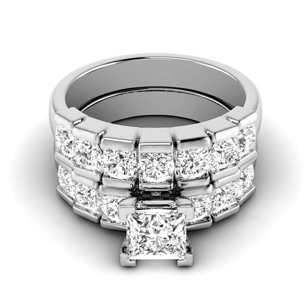 Make a statement with our 2.20-3.35 ct round & princess cut diamonds - bridal set MDL#15634. This bridal set designed with 1.85 carat low-cost side diamonds. Select your option of center diamond from options offered above. Select your option of precious metal between 14 Karat, 18 Karat Yellow, White and Rose Gold OR Platinum. At Primestyle.com, we deal ONLY with 100% real, natural and conflict free diamonds. Our diamonds are NOT enhanced NOR treated. Shine with class and beauty with Primestyle diamonds bridal sets.