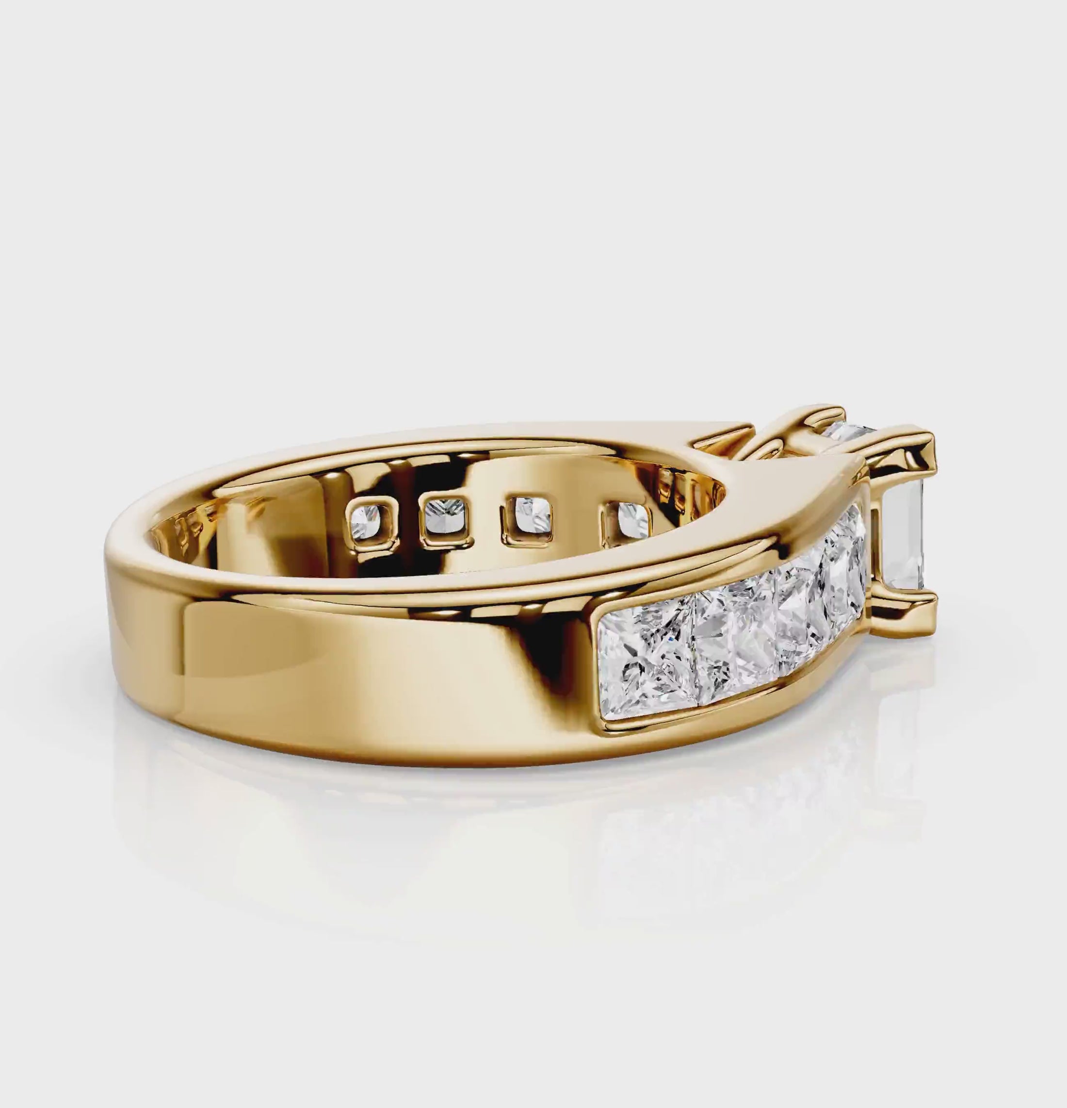 - Side Stones 1: 8 Princess Cut natural diamonds weighing 2.30 carat