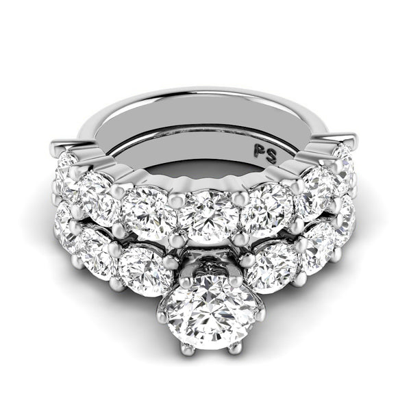Discover the perfect blend of sophistication and value in this 3.95-5.10 CT Princess & Round Cut Natural diamonds featuring a stunning center stone. Set in premium 14kt, 18kt, and platinum, every facet reflects PrimeStyle's dedication to quality. This bridal set features natural diamonds that offer stunning sparkle, making this piece ideal for both everyday wear and special occasions. A testament to affordable luxury.