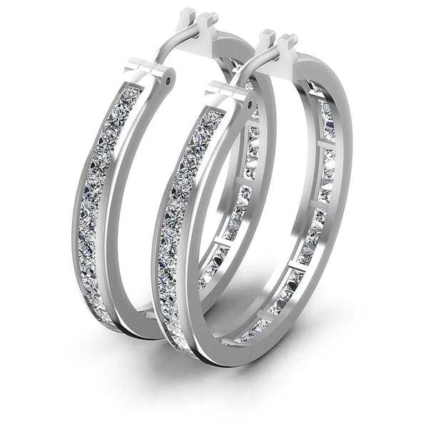 7.10 CT Princess Cut Natural Diamonds - Hoop & Drop Earrings