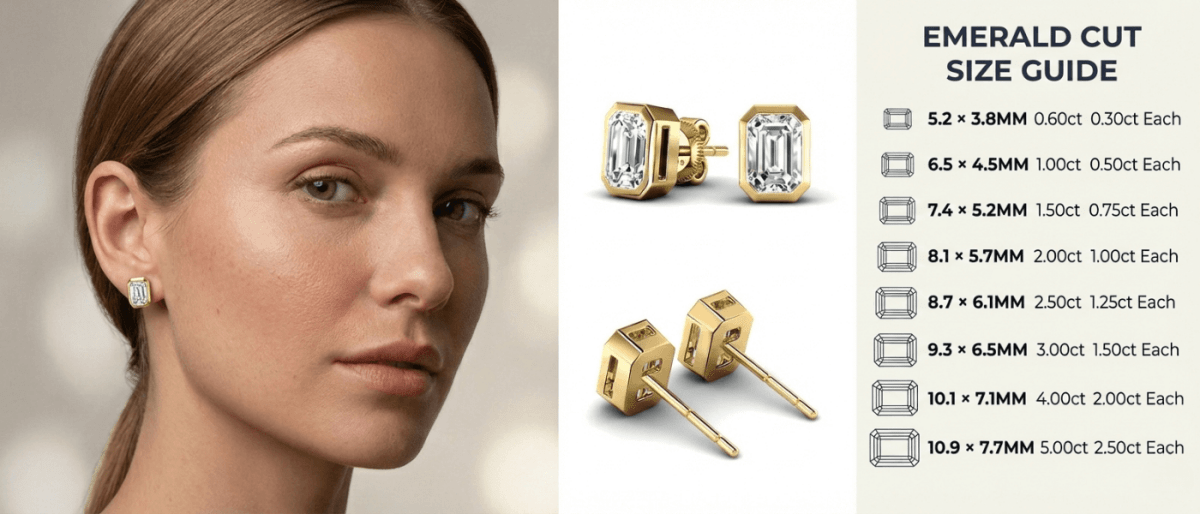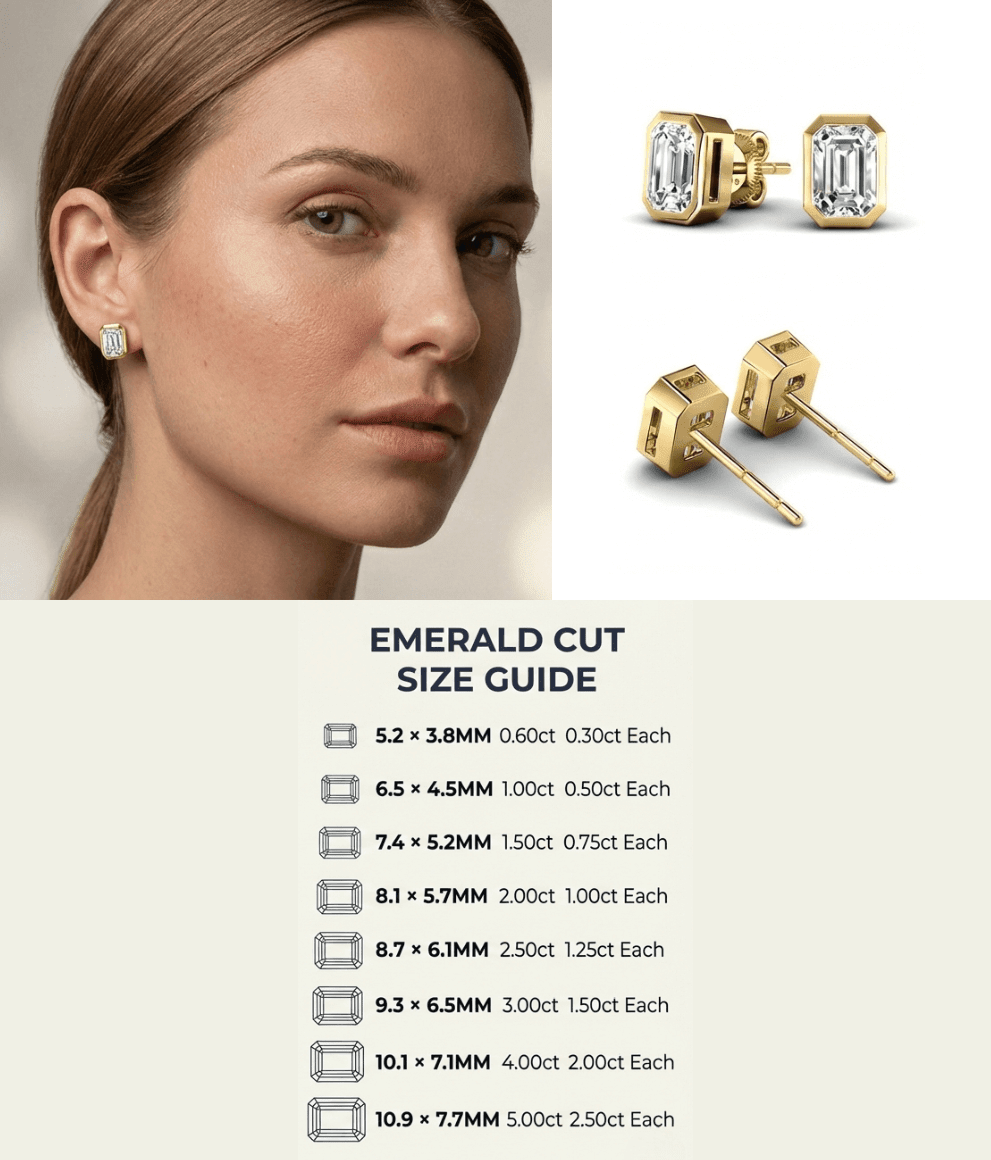 - Adorn yourself with the elegant beauty of our 0.60-5.00 CT emerald cut lab grown diamond stud earrings.