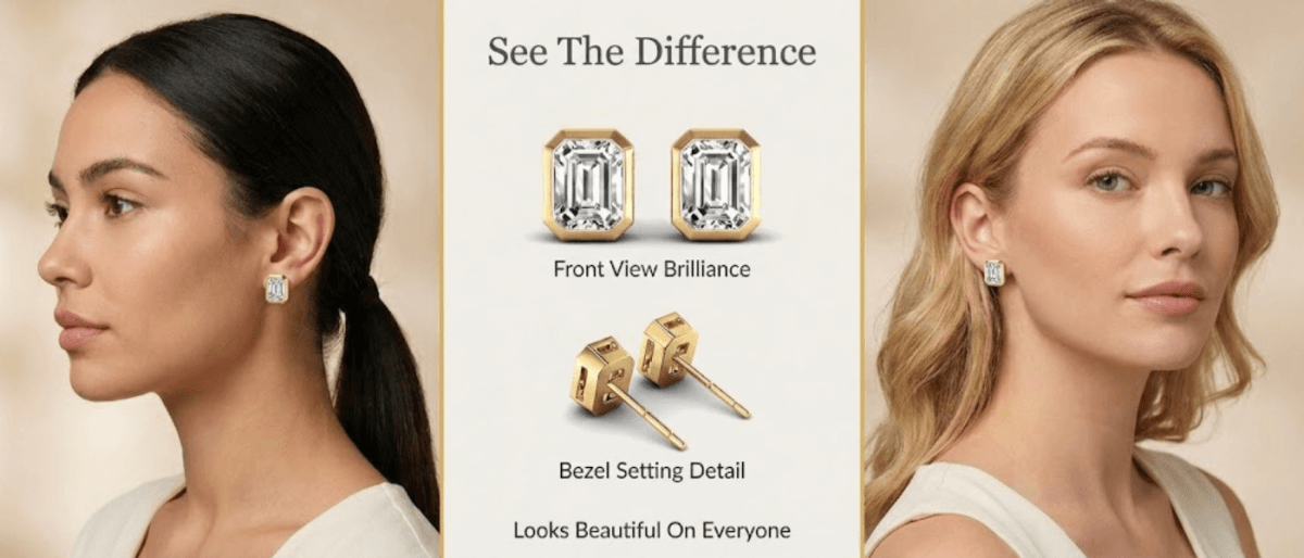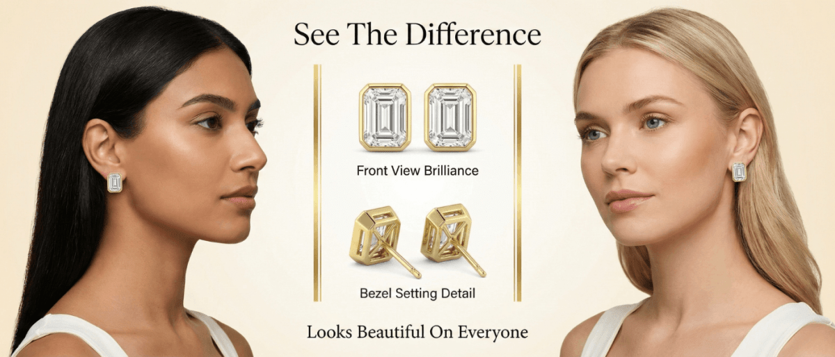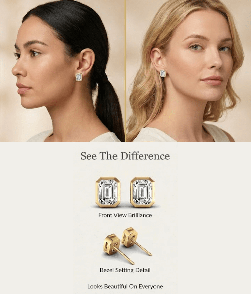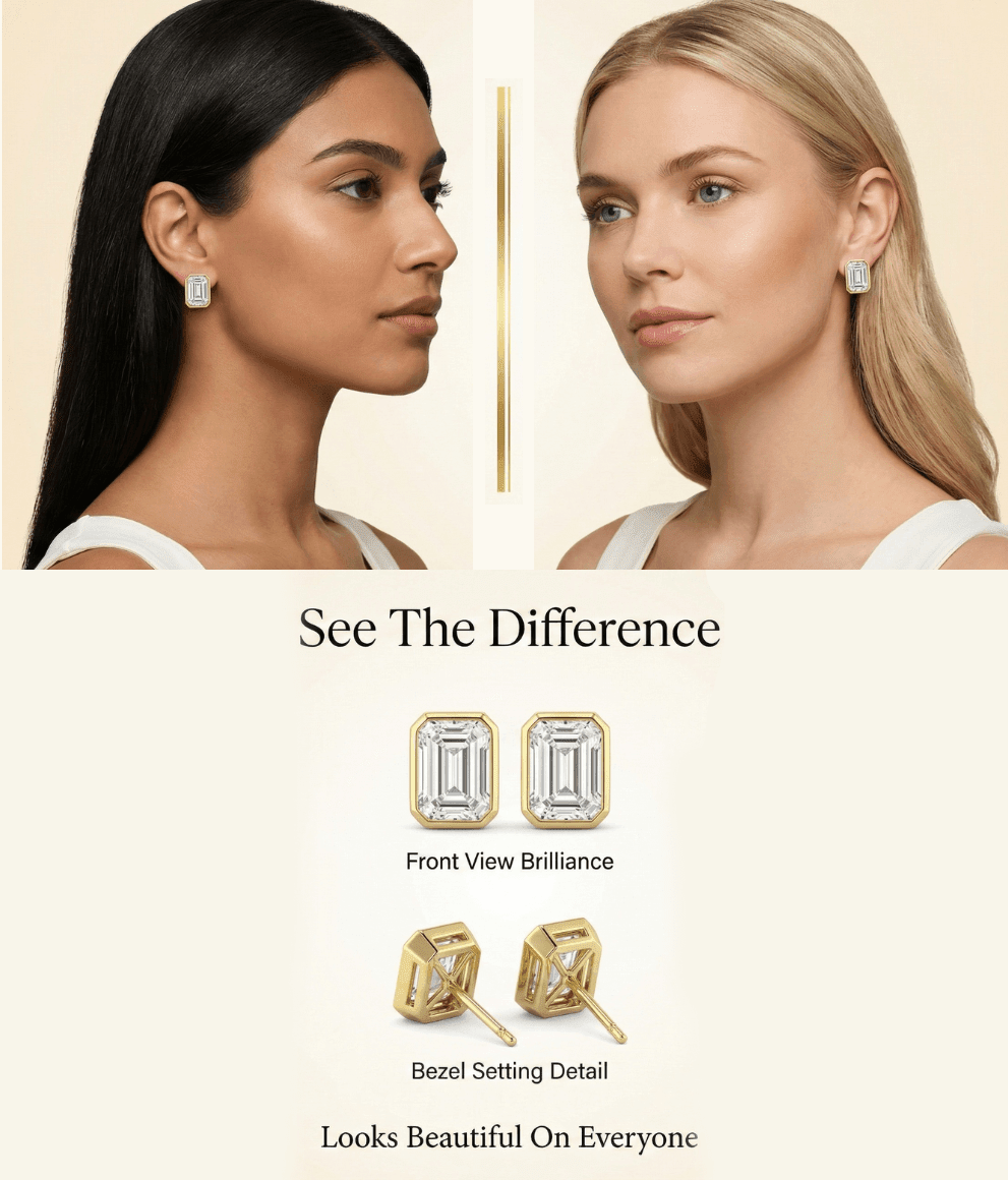 Bezel Set 0.60-5.00 CT Emerald Cut Lab Grown Diamonds - Stud Earrings