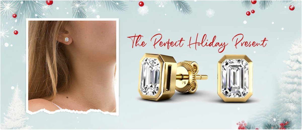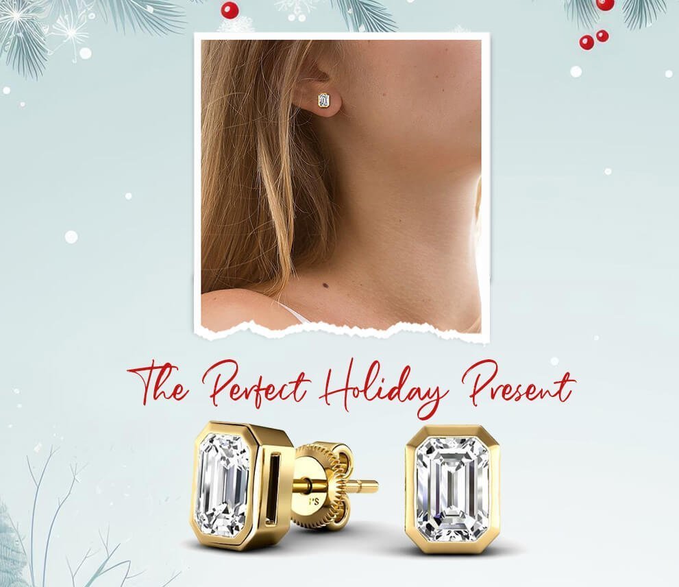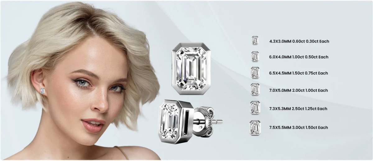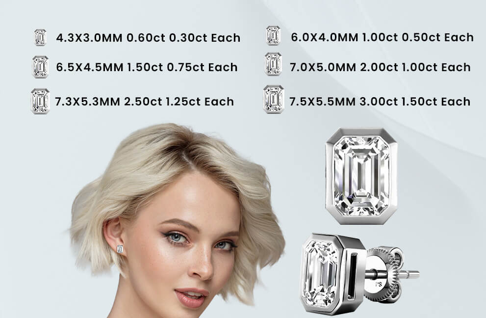 - Adorn yourself with the elegant beauty of our 0.60-5.00 CT emerald cut lab grown diamond stud earrings.