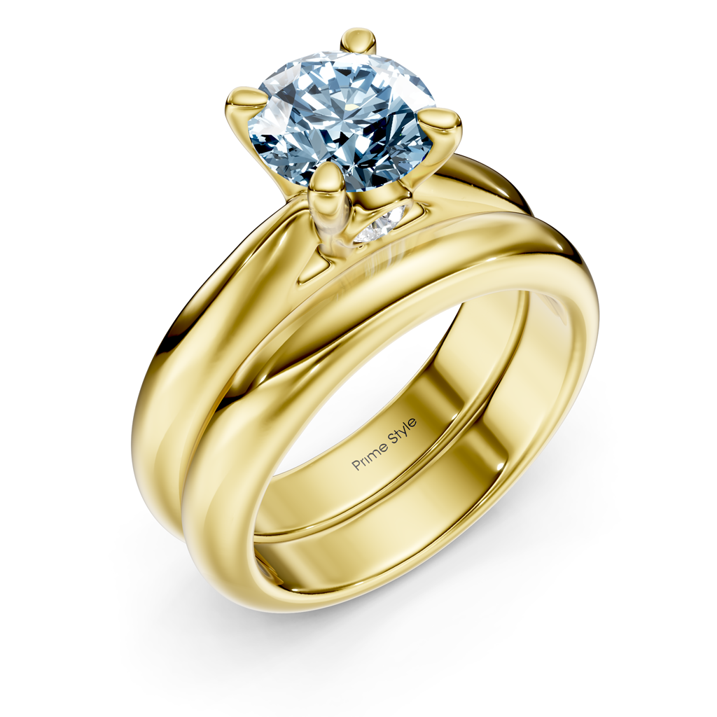 Celebrate your love story with this 1.10-4.10 CT round cut fancy blue lab grown diamond bridal set. The vibrant fancy blue center stone is complemented by matching lab grown diamonds on both the engagement ring and the matching wedding band, creating a cohesive, eye-catching sparkle from every angle.