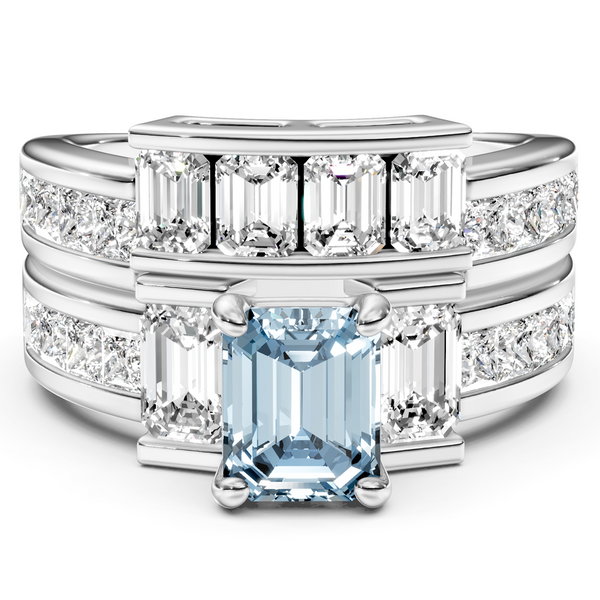 Celebrate your love story with this 3.70-6.70 CT emerald and princess cut fancy blue lab grown diamond bridal set. The vibrant fancy blue center stone is complemented by matching lab grown diamonds on both the engagement ring and the matching wedding band, creating a cohesive, eye-catching sparkle from every angle.