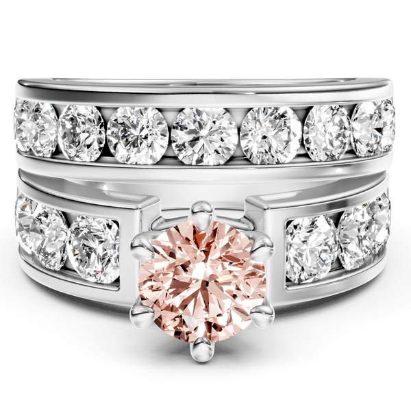 • Celebrate your love story with this 3.85-6.85 CT Round Fancy Pink fancy pink lab grown diamond bridal set. The engagement ring and matching wedding band are designed to sit perfectly together, creating a complete look of color, sparkle and elegance. Crafted in 14KT White Gold, 14KT Yellow Gold, 14KT Rose Gold, 18KT White Gold, 18KT Yellow Gold, 18KT Rose Gold and Platinum, this bridal set is designed for both beauty and everyday comfort.