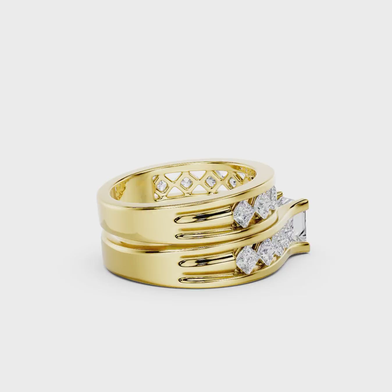 - Side Stones 1: 8 Princess Cut lab grown diamonds weighing 0.80 carat