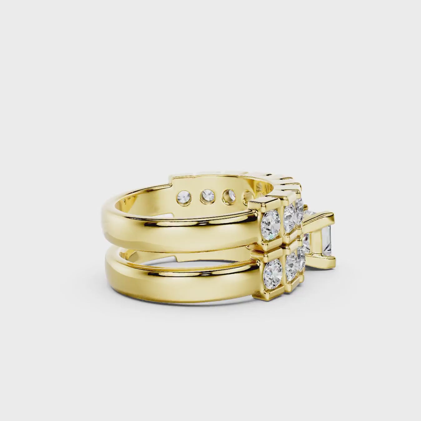 Step into sophistication with this 2.75-8.25 CT Princess & Round Cut Lab Grown diamonds featuring a beautiful center stone. The 14kt, 18kt, and platinum setting provides the perfect foundation for the lab-grown diamonds to showcase their natural beauty. PrimeStyle's commitment to affordable luxury means you can enjoy exceptional craftsmanship in this bridal set without the designer price tag.