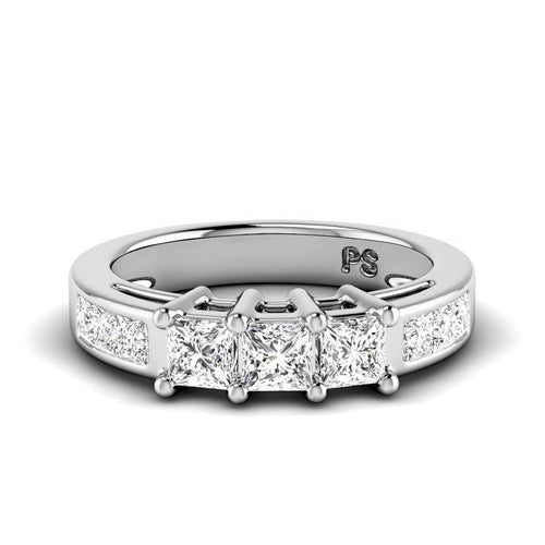 - Side Stones 3: 3 Princess Cut lab grown diamonds weighing 0.70 carat