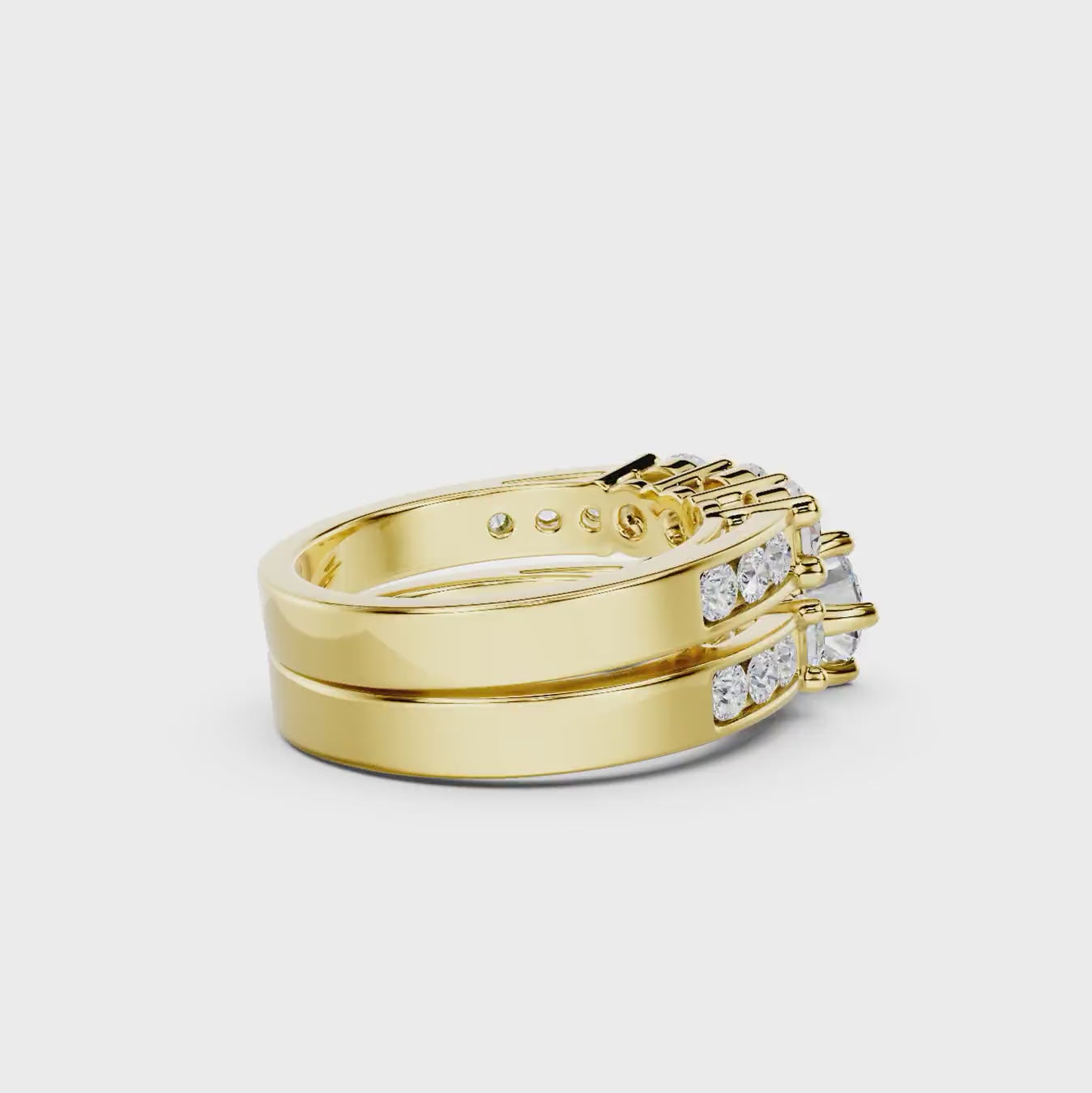 - Side Stones 2: 3 Princess Cut lab grown diamonds weighing 0.70 carat