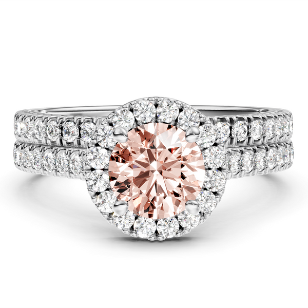 • Celebrate your love story with this 1.70-4.70 CT Round Fancy Pink fancy pink lab grown diamond bridal set. The engagement ring and matching wedding band are designed to sit perfectly together, creating a complete look of color, sparkle and elegance. Crafted in 14KT White Gold, 14KT Yellow Gold, 14KT Rose Gold, 18KT White Gold, 18KT Yellow Gold, 18KT Rose Gold and Platinum, this bridal set is designed for both beauty and everyday comfort.