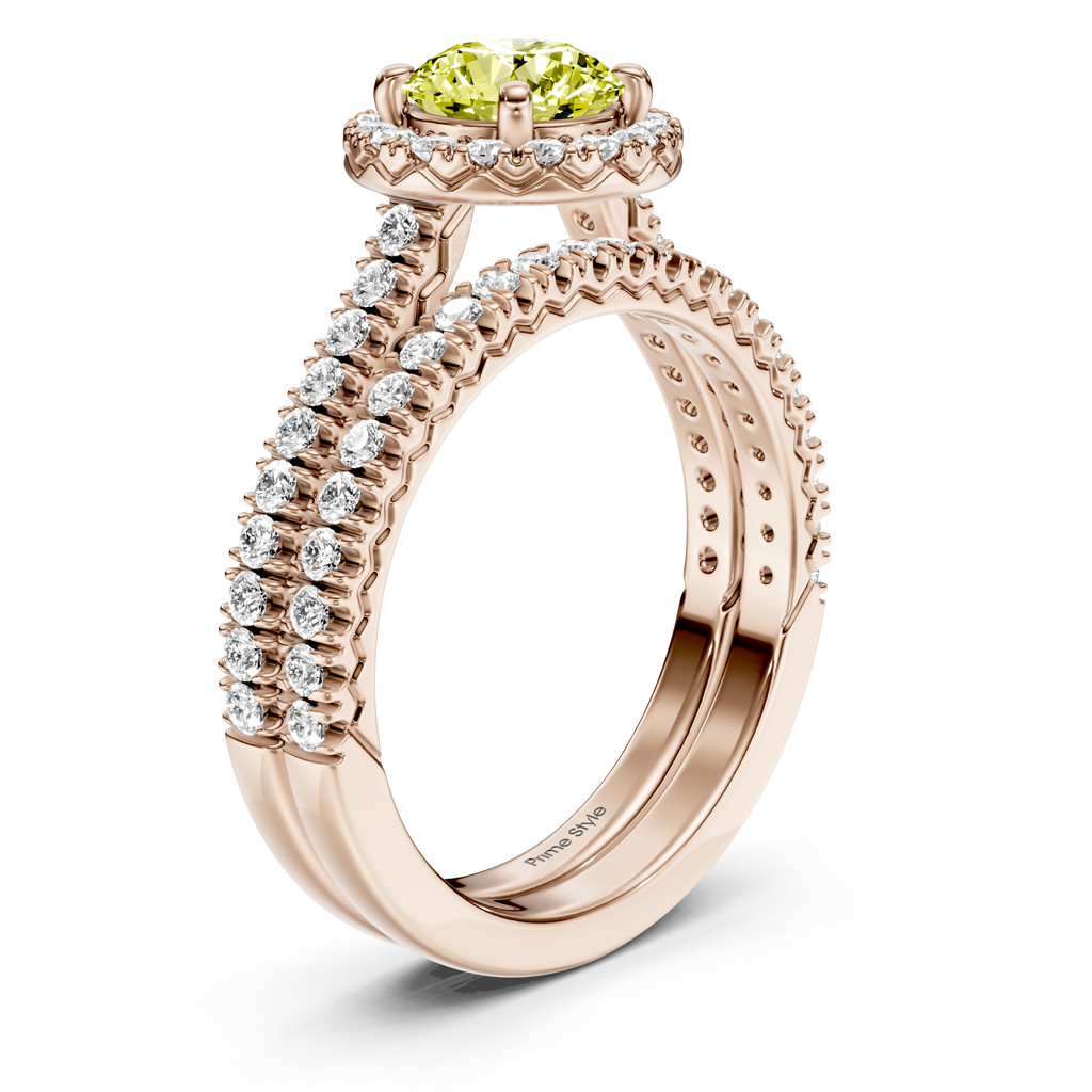 This 1.70-4.70 CT Round Fancy Yellow fancy yellow lab grown diamond bridal set pairs a radiant engagement ring with a matching wedding band. Each stone is selected for vivid color and exceptional sparkle.
