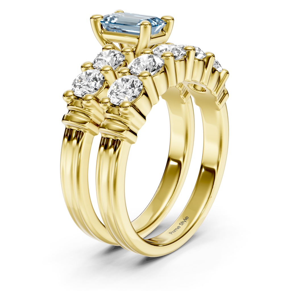 - Coordinated engagement ring and wedding band for a complete bridal look