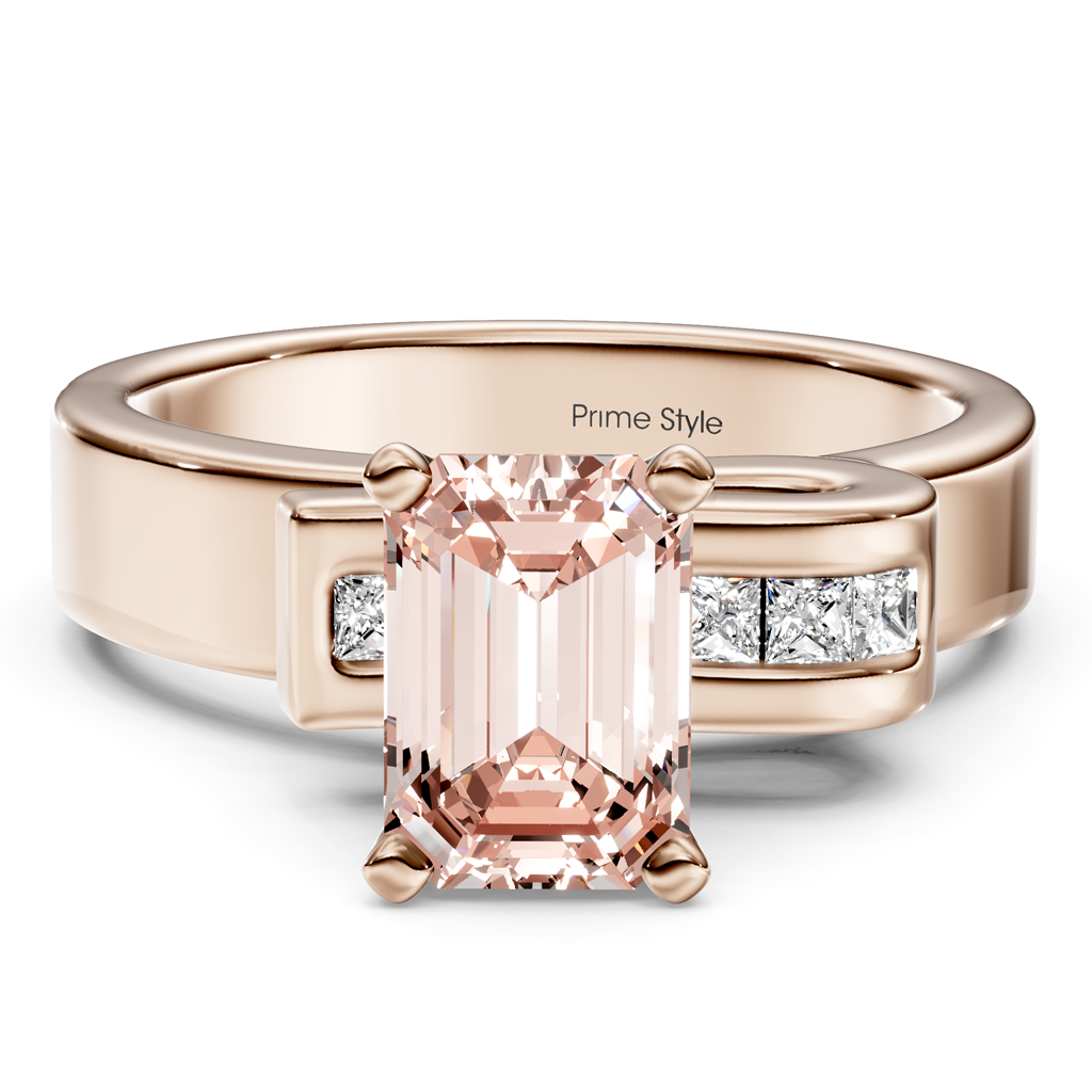 Fall in love with this 1.10-4.10 CT Emerald & Princess fancy pink lab grown diamond engagement ring. Each stone is hand-selected for vibrant color and brilliant fire, giving you a romantic look that stands out from traditional white diamonds.