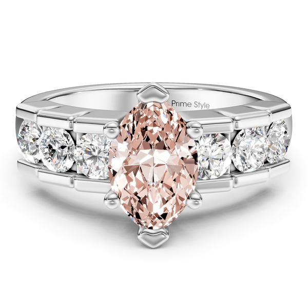 Fall in love with this 1.85-4.85 CT Marquise & Round fancy pink lab grown diamond engagement ring. Each stone is hand-selected for vibrant color and brilliant fire, giving you a romantic look that stands out from traditional white diamonds.