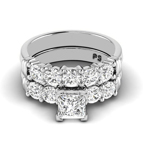 Capture the essence of refined luxury with this 1.05-6.55 CT Princess & Round Cut Lab Grown diamonds featuring a magnificent center stone. The 14kt, 18kt, and platinum setting enhances the natural brilliance of the lab-grown diamonds, creating this engagement ring that's both stunning and practical. PrimeStyle delivers the perfect balance of beauty, quality, and affordability.