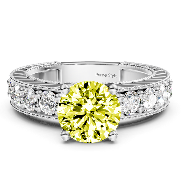 Experience the beauty of this 1.85-4.85 CT Princess & Round Fancy Yellow fancy yellow lab grown diamond engagement ring. Each stone is chosen for rich color and exceptional brilliance, offering a striking alternative to traditional white diamonds.