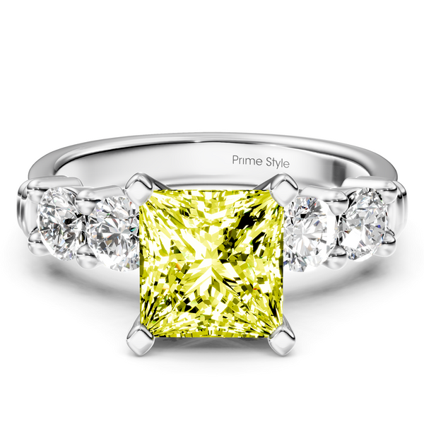 Experience the beauty of this 1.60-4.60 CT Round Fancy Yellow fancy yellow lab grown diamond engagement ring. Each stone is chosen for rich color and exceptional brilliance, offering a striking alternative to traditional white diamonds.