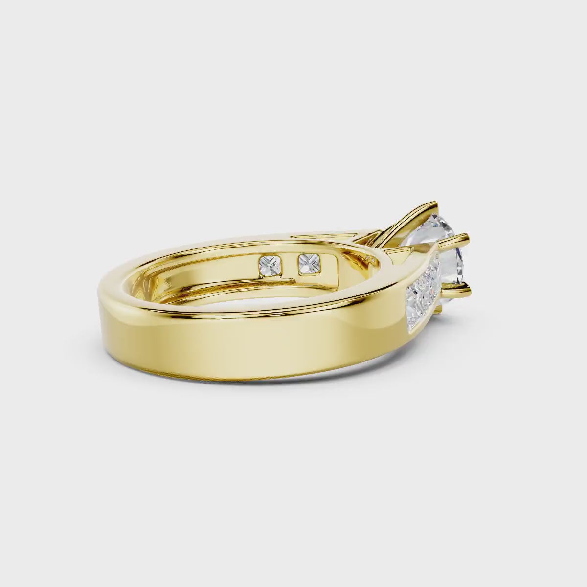 - Side Stones 1: 6 Princess Cut lab grown diamonds weighing 1.05 carat